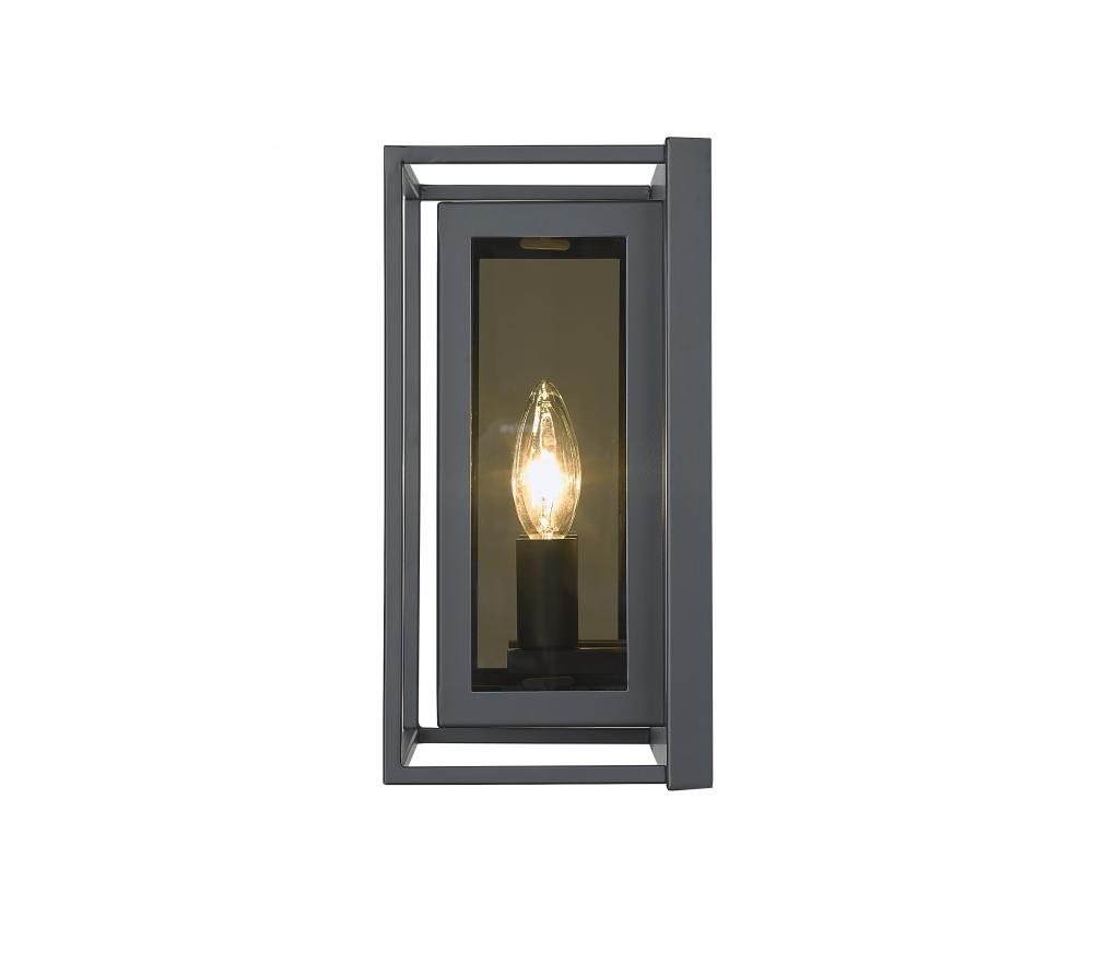 Choose this decadent contemporary two-light wall sconce for its chic blend of steel and mirror, and a geometric linear silhouette that updates modern bathrooms and hallways. A double frame made from misty charcoal finish steel joins both clear and smoke glass to deliver a soothing, atmospheric aesthetic with plenty of inspiration. Candelabra bulb mounts create an opportunity to change up the motif and fit into transitional spaces.