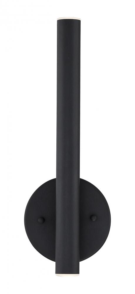 Dress up a modern bathroom with the sleek style of this metal wall sconce. Designed with a matte black finish and dimmable light, this exquisitely elegant fixture creates a stylish aura.