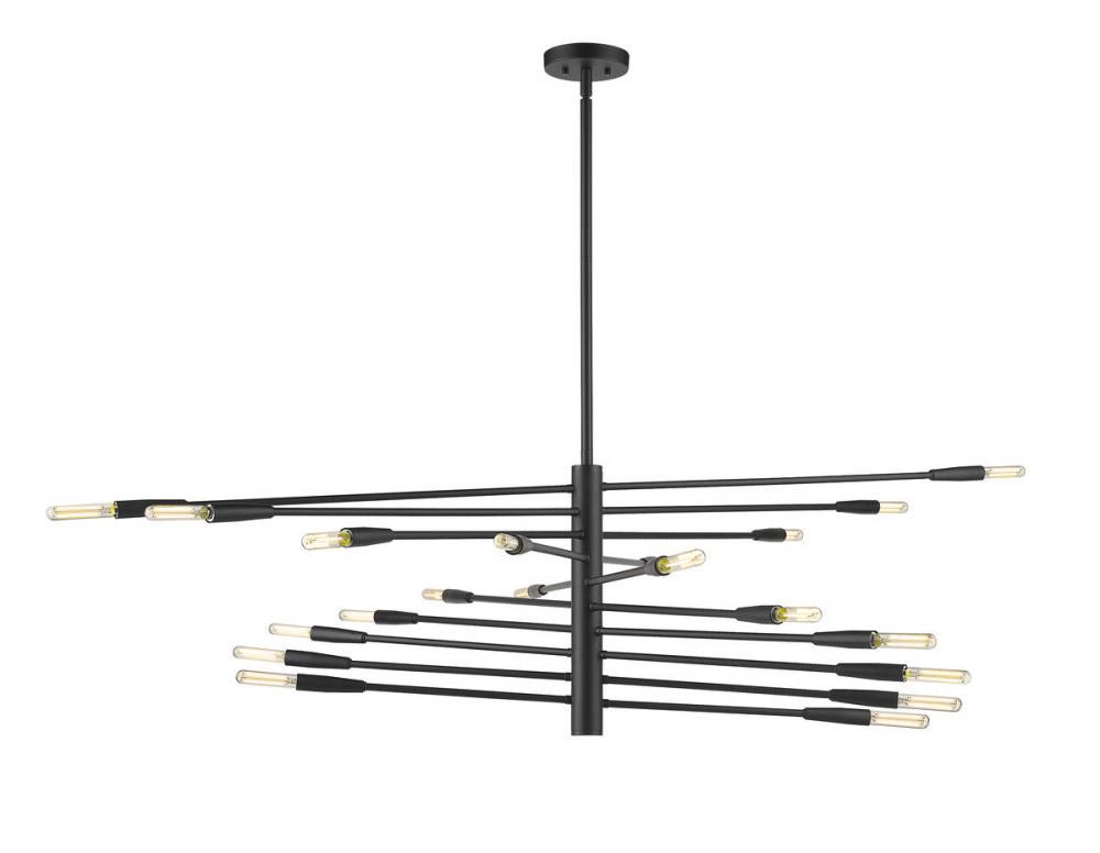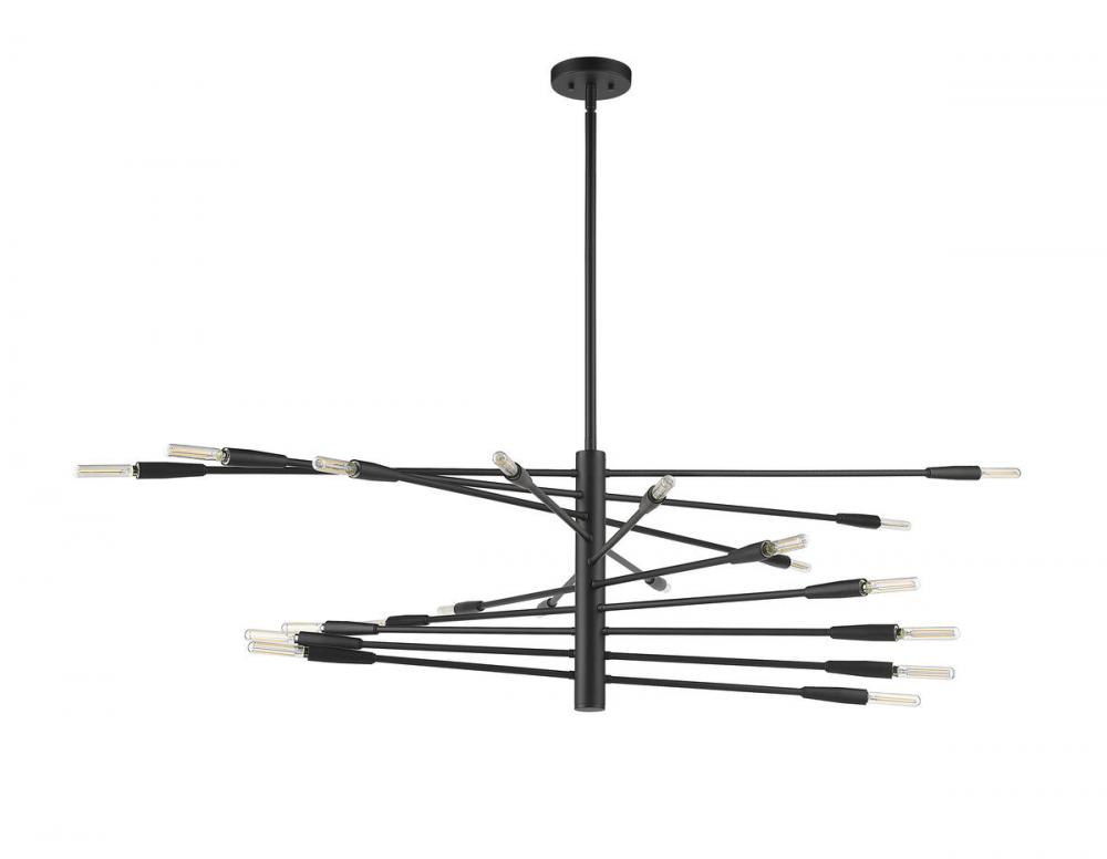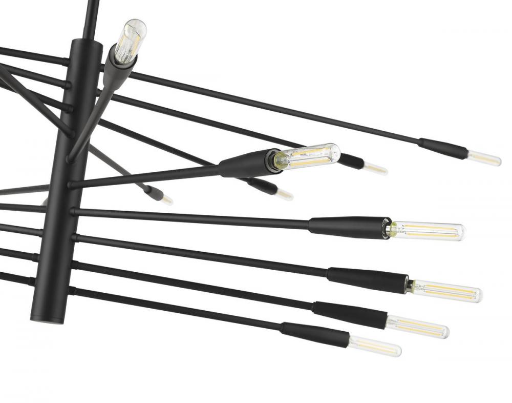 The ultimate in contemporary dynamic style rests in the customizable design of the Ascension twenty-light chandelier. With slender arms that rotate, this fixture crafted of bold matte black finish steel delivers a dynamic space-age look that stands out.