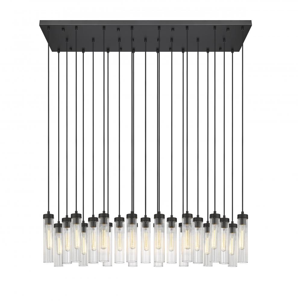 Create a veritable light show for ambient illumination and a glam artistic effect, choosing this 23-light linear chandelier to highlight an island, bar, or living area. Subtly delicate fluted glass shades form a simple yet impactful silhouette, enriching a contemporary setting. Matte black finish metal comes to life when bulbs are lit, delivering decadent contrast.