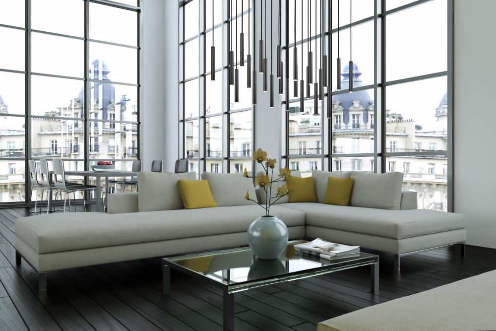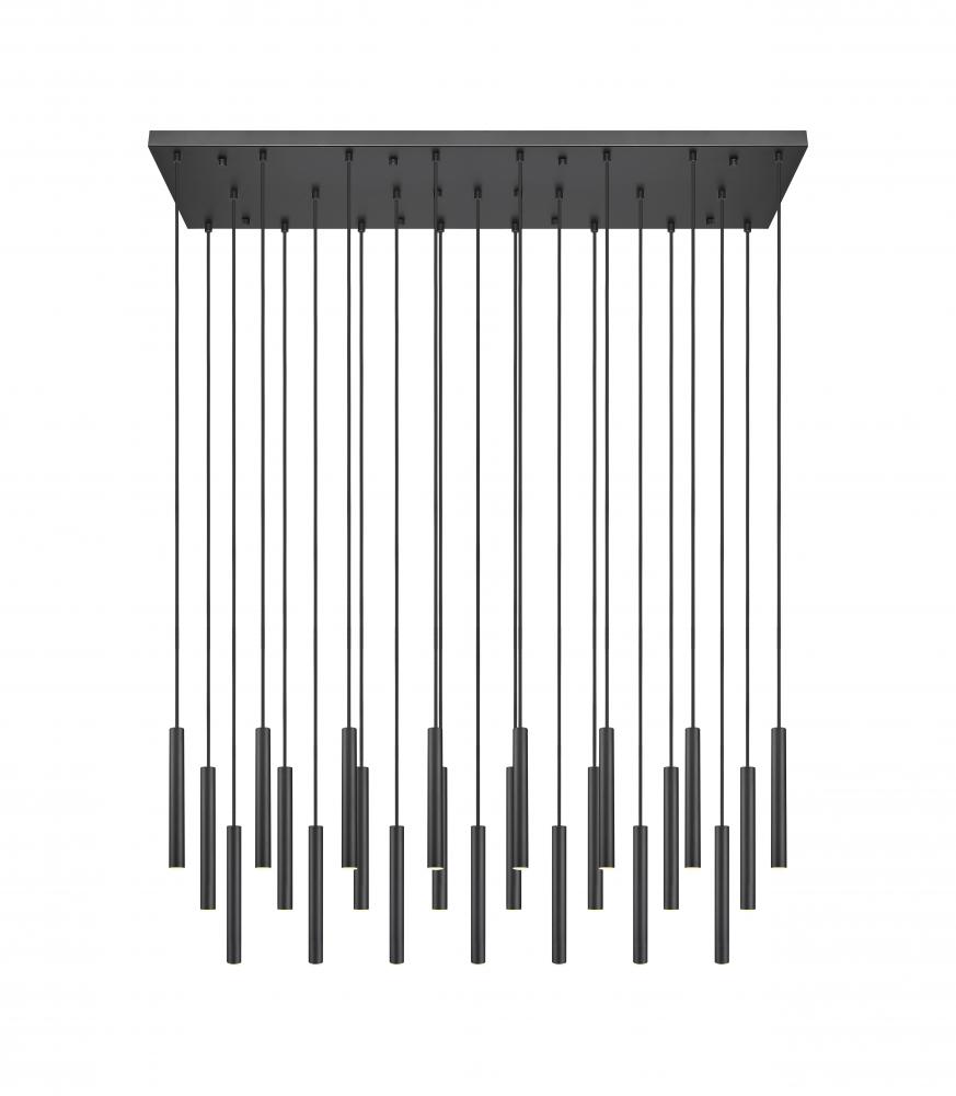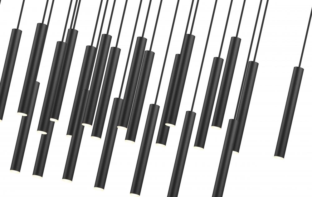 Infused with sleek character and elegant simplicity, this modern 23-light linear chandelier features integrated LEDs that dim to create custom ambiance. Its the perfect choice for a grand foyer or over a dining table, delivering staggered lights with slim housings and a cool matte black finish over its steel construction.