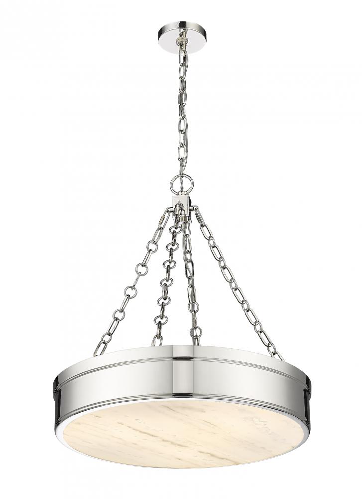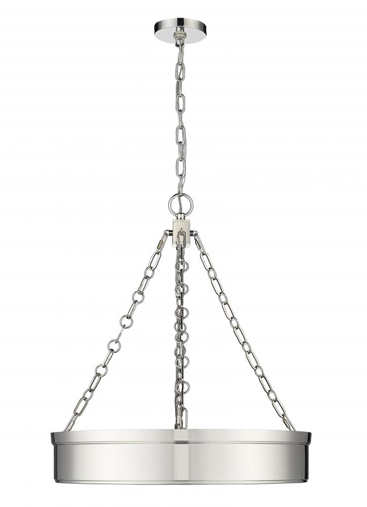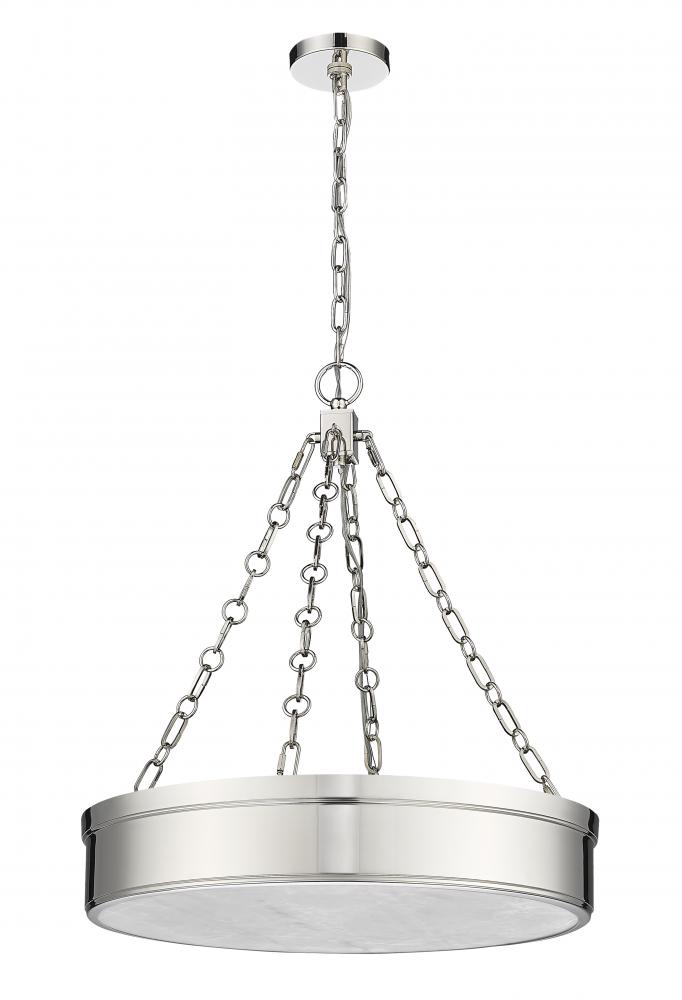Versatile in design, this three-light LED pendant light suits d?cor schemes from industrial to modern and adds a sleek minimalist look. A ring design crafts simplicity in a fixture from the Anders collection, featuring a pleasing polished nickel finish steel circular frame suspended from cable chains reinforcing a symmetrical aesthetic. With a translucent alabaster diffuser, soft ambient lighting adds a warm glow to kitchens, living areas, and entryways.