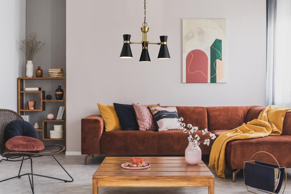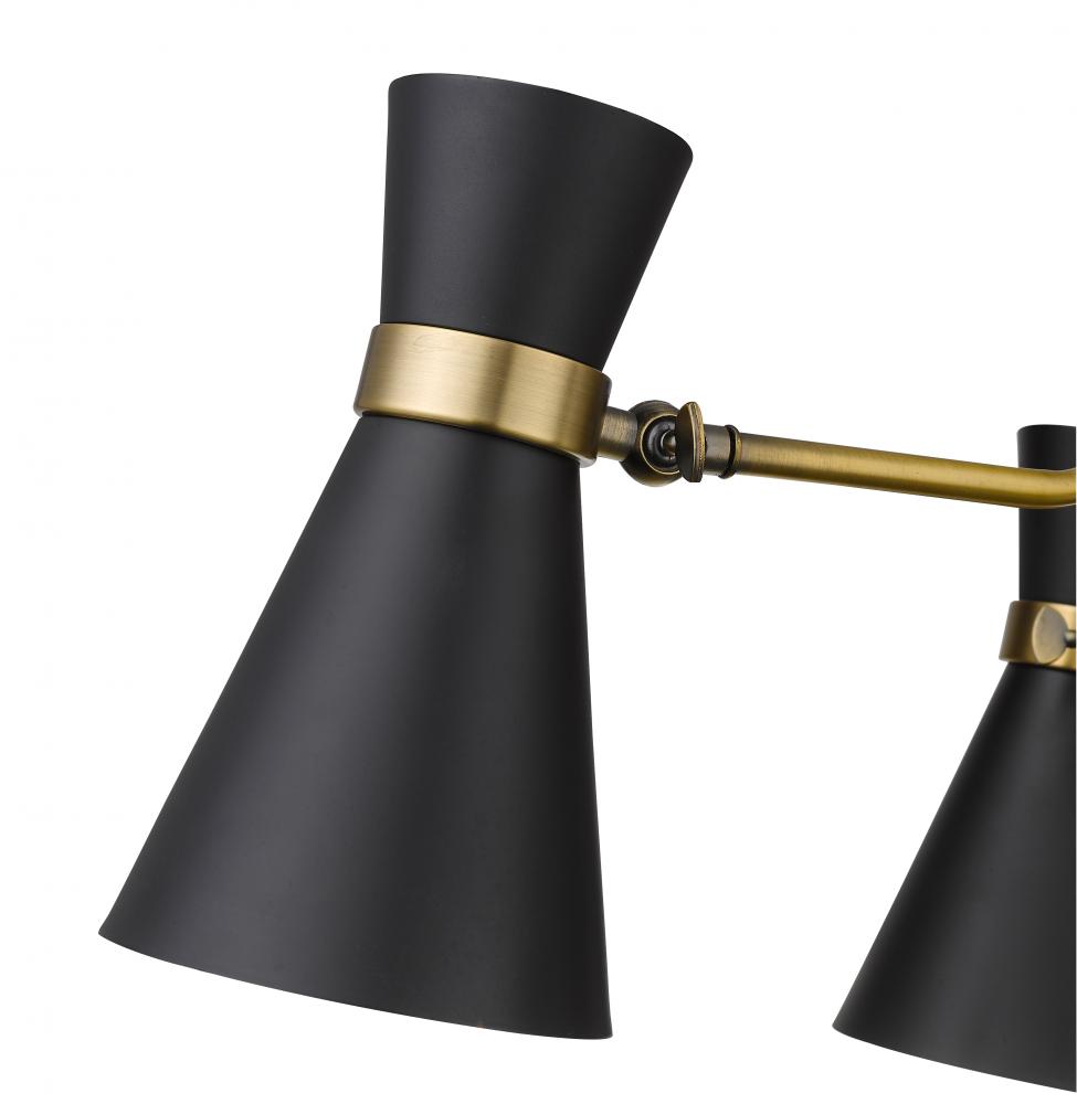 A decorative triplet silhouette shapes industrial influence that adds casual elegance to this matte black finish steel three-light chandelier. Dress up a dining or entertaining space with this tasteful fixture trimmed with heritage brass finish steel. This sleek chandelier captures the heart of romantic industrial charm.