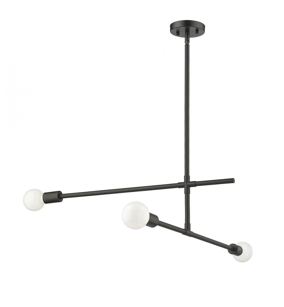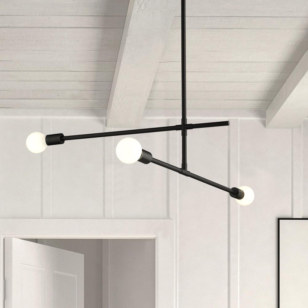 Toe the line on sleek modernist style with a fixture that becomes a primary element of custom d?cor. This three-light chandelier from the Modernist collection dazzles with a slightly asymmetrical linear design featuring parallel and perpendicular frames crafted of matte black finish steel. Choose stylish bulbs to customize a dining or living space, soaking up the striking contemporary character of this classic fixture.
