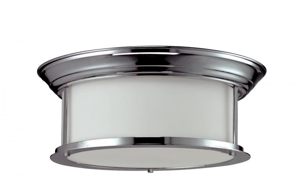Modern chrome and matte opal shades give this three light ceiling lamp a clean and crisp look.