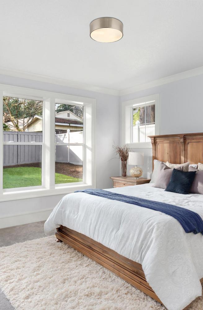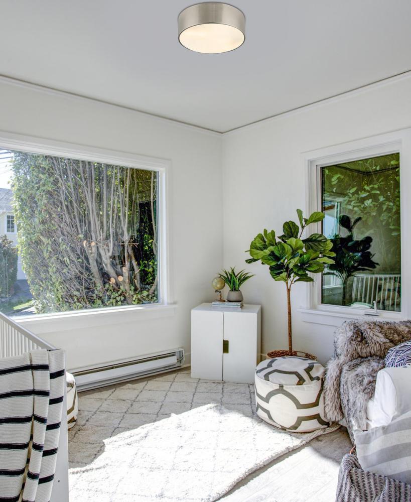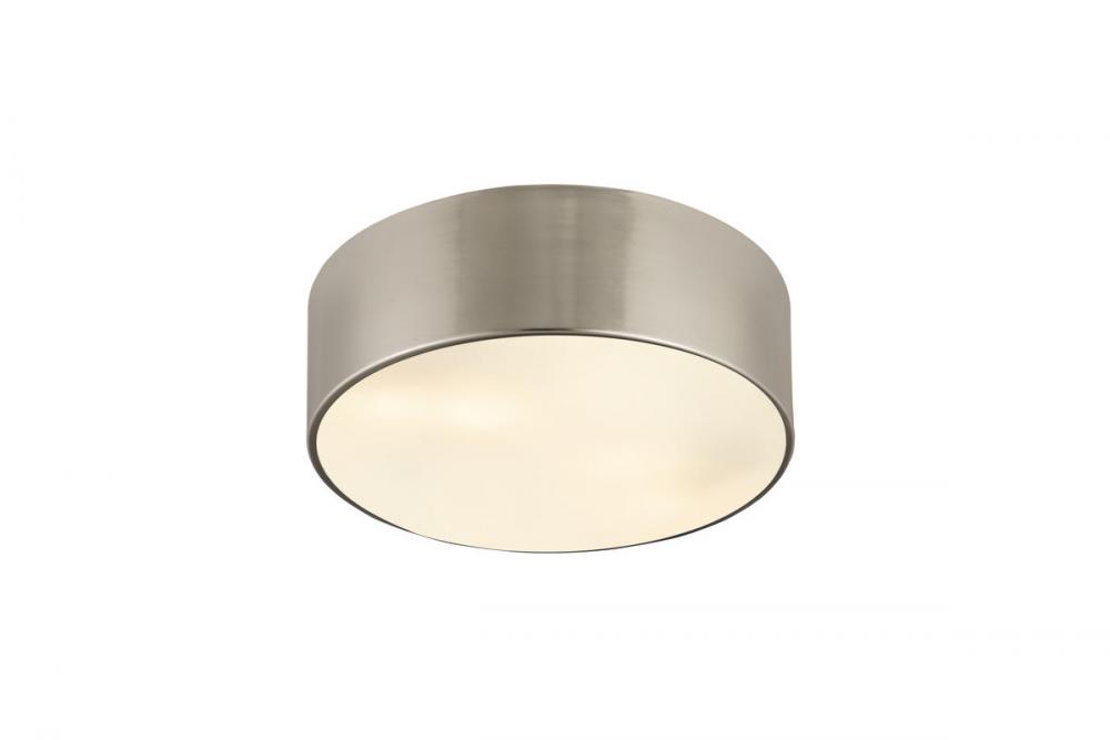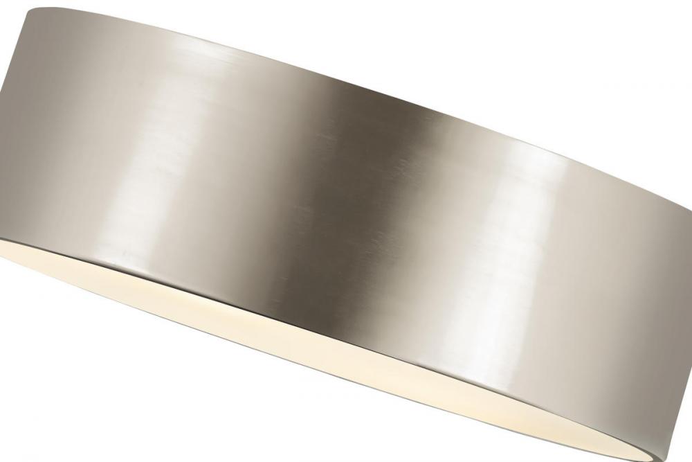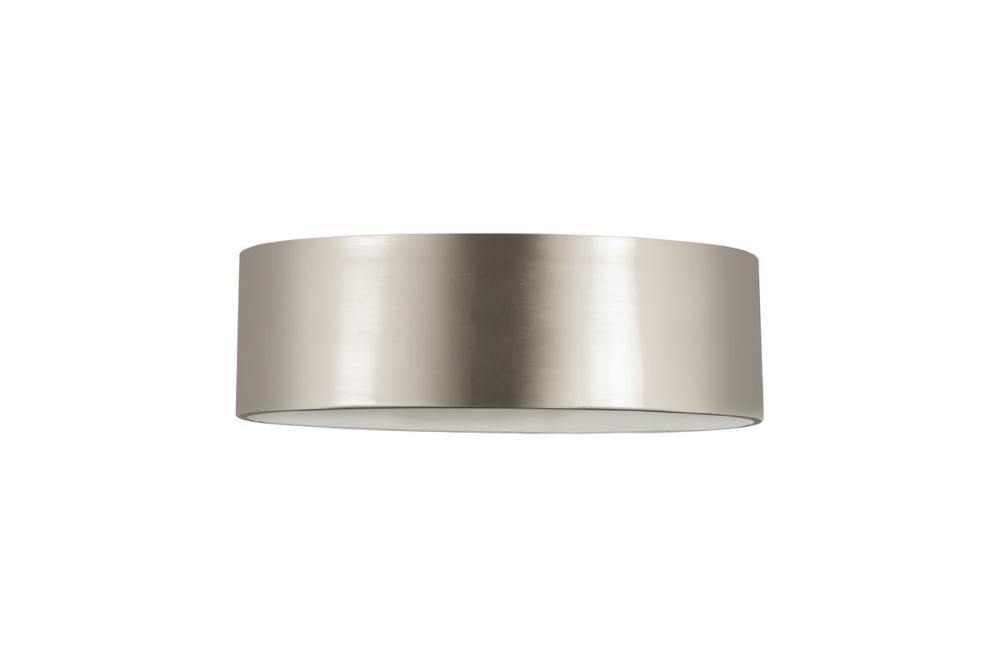 Inspiring with an easy, casual feel, the Harley modern three-light flushmount ceiling light delivers simple elegance with a hint of industrial design elements. A simple ring silhouette forms its drum shade made of brushed nickel finish steel, creating a versatile fixture for a low-key but tasteful look in a kitchen, dining space, or living area.