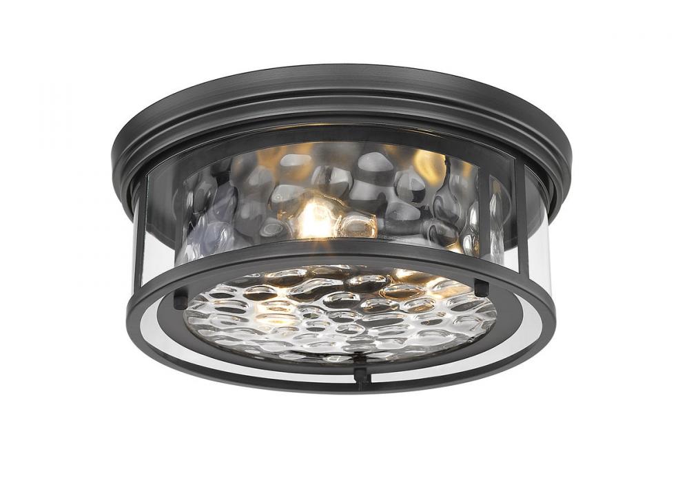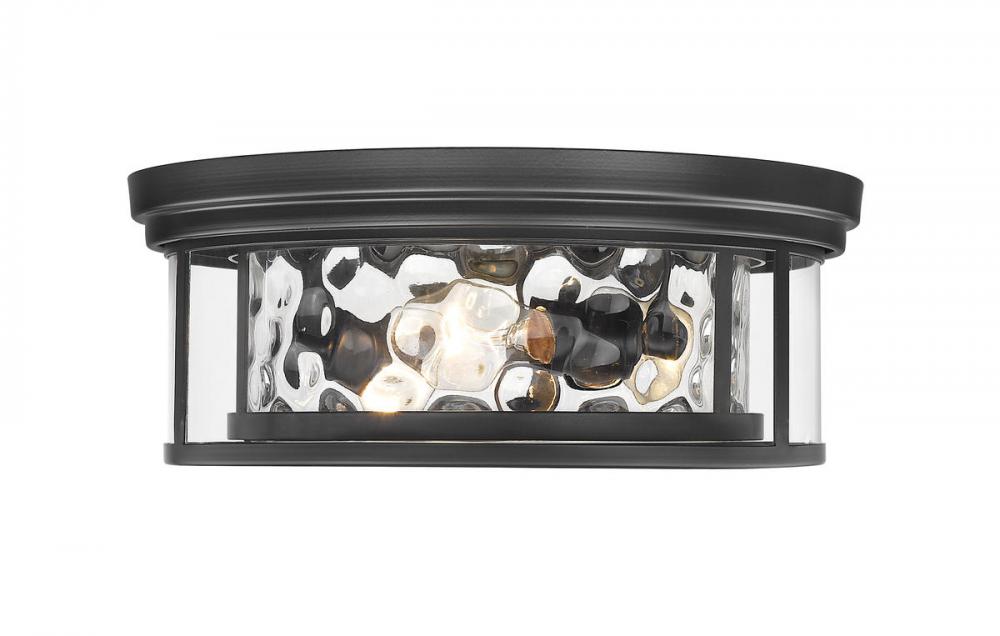 Light up your space with a three-light flush mount light. The clear glass shade and metal frame offer a versatile appearance with a bronze finish and round silhouette.