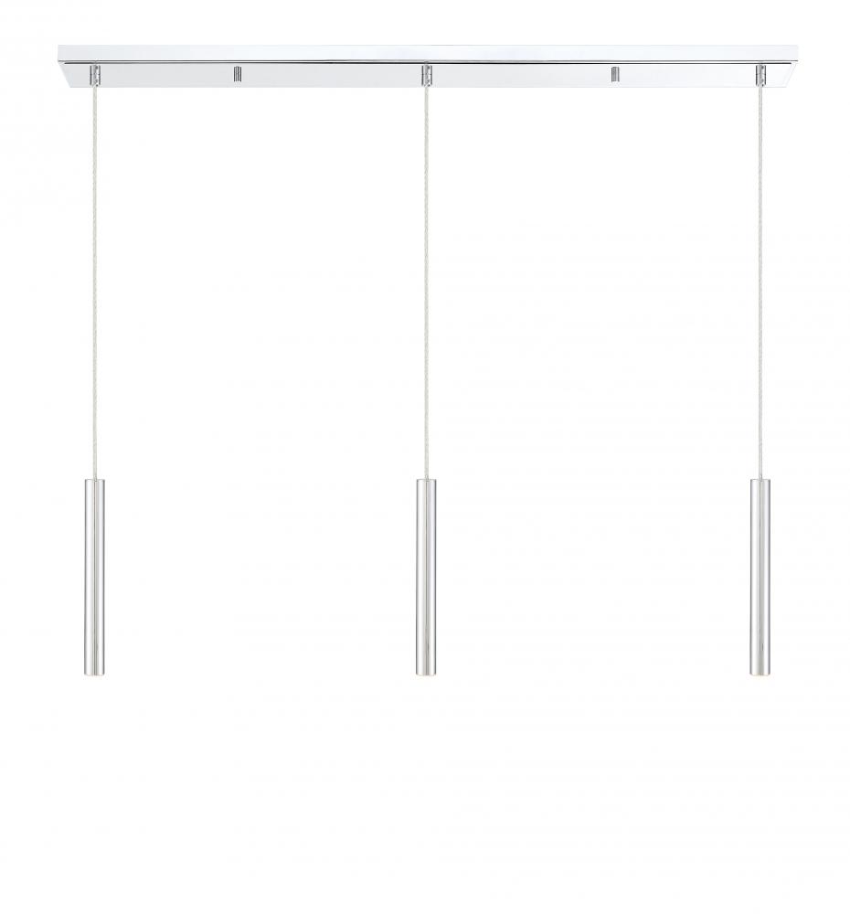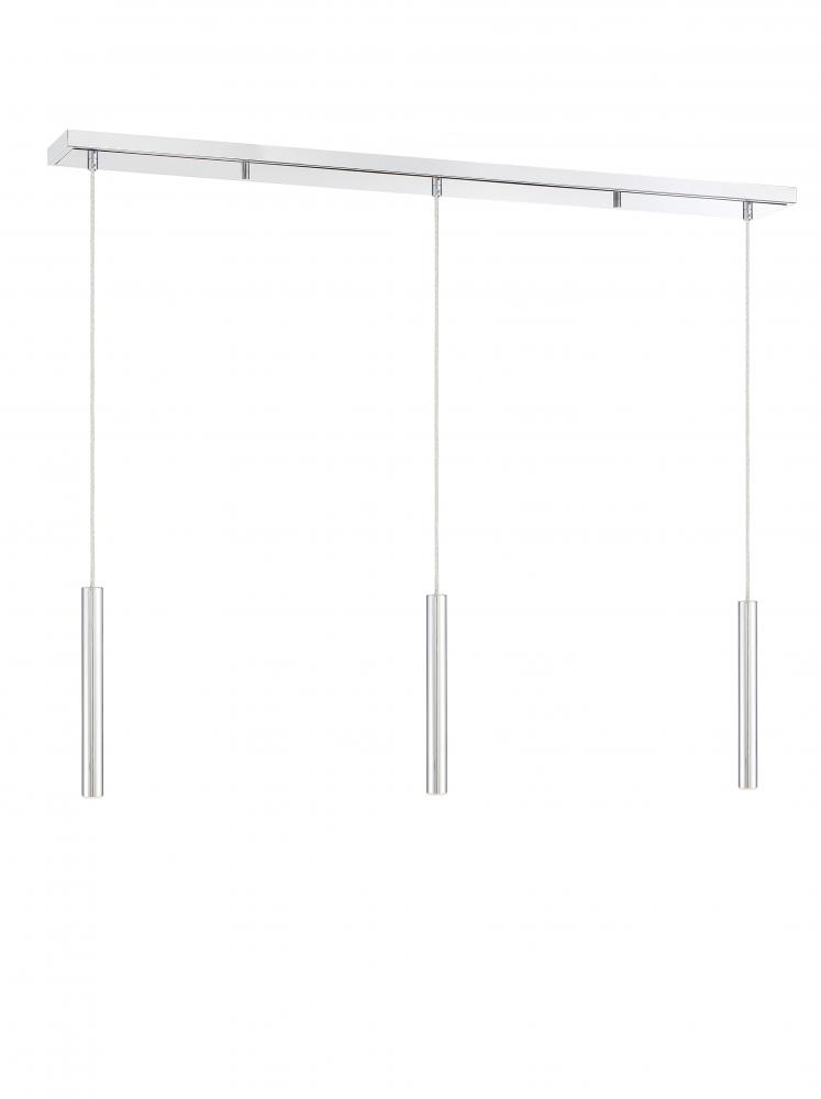 Bright metallic brilliance from this three-light pendant light adds instant elevation. The chrome finish creates a stunning visual, full of soft lighting and elongated lines.