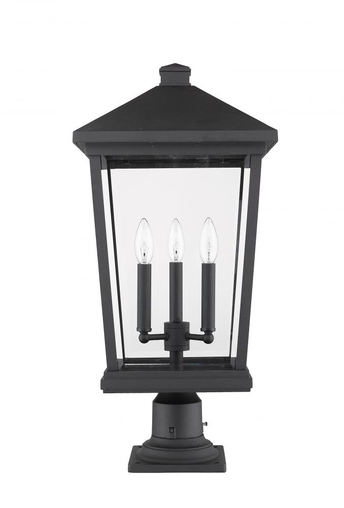 Make sure guests are not in the dark as you throw an outdoor soiree. Perfect for a walkway or garden, this black finish outdoor post light delivers a sweet village ambiance with a clear view of a three-light candelabra bulb base.