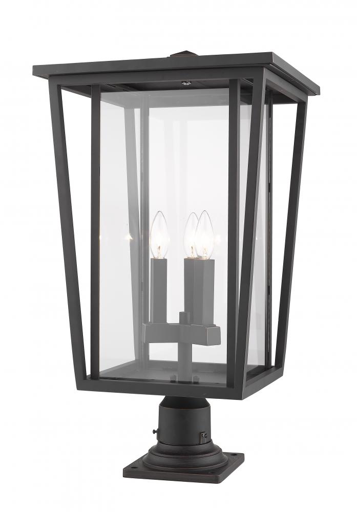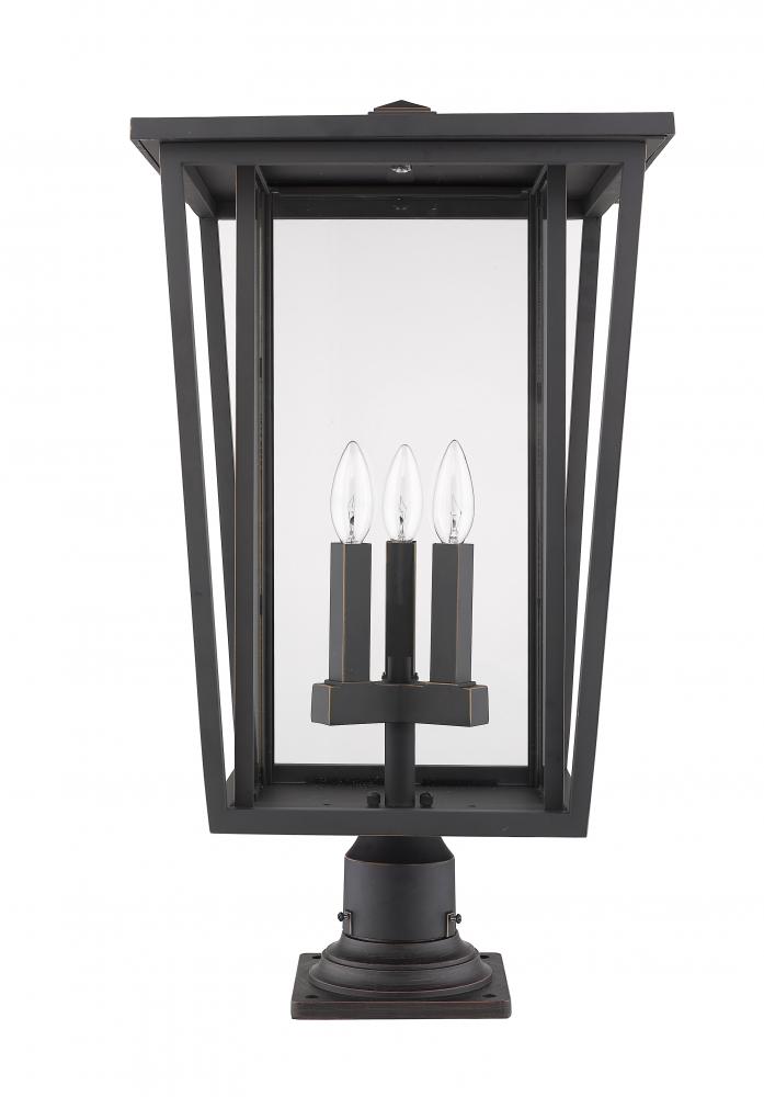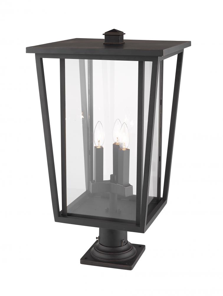 A hint of charming traditional style sneaks in to the modern motif of this elegant outdoor post lantern. Proudly light up a garden space or walkway with a rubbed bronze finish frame and a candelabra-style bulb base behind clear glass.
