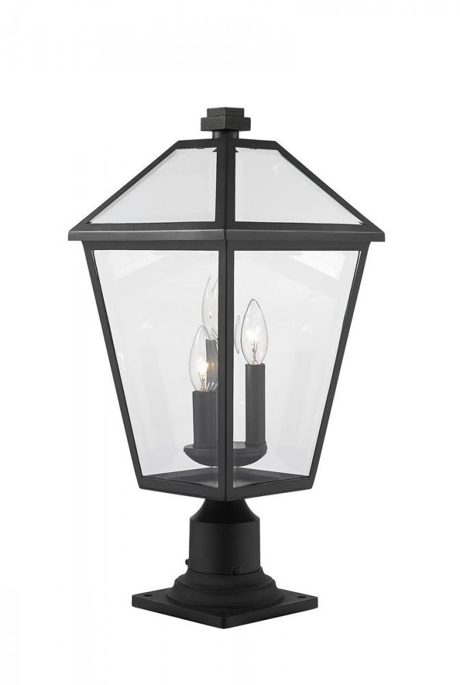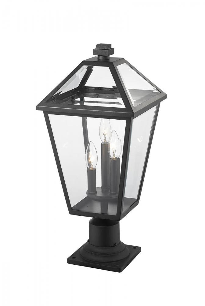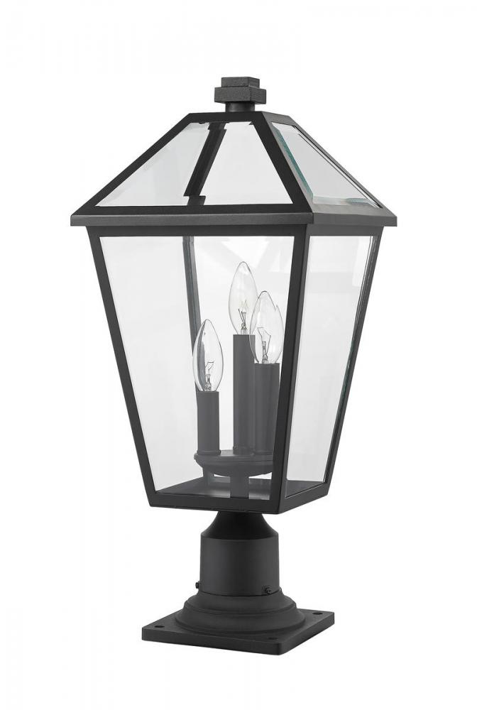 Illuminate an exterior front or back walkway with a classic fixture reflecting a charming village theme. Made from Midnight Black metal and clear beveled glass panels, this three-light outdoor pier mounted fixture delivers a charming upgrade with industrial-inspired attitude and a silhouette thats perfect for lower-level gardens and walkways.