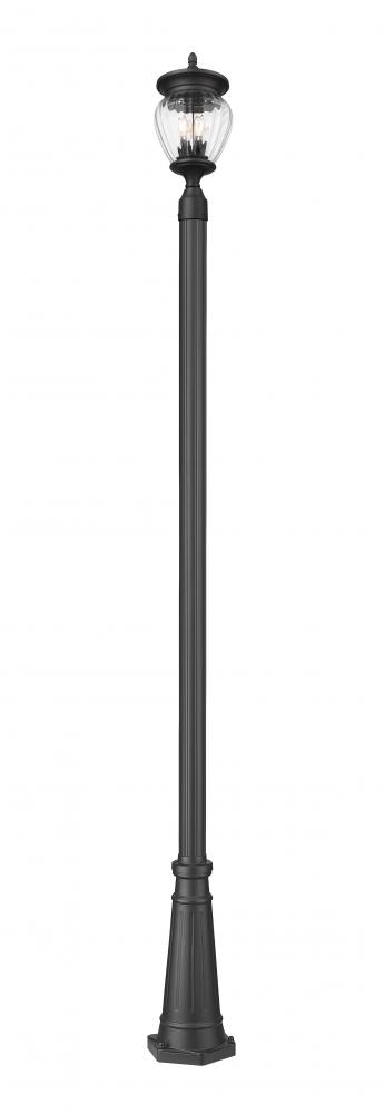 Consider this three-light outdoor post-mounted light to add elegance along with soft illumination in your landscaping. Updating a back or front yard with dimmable lighting, this slender fixture pairs an aluminum post and light frame with a Coastal black paint finish. Ribbed glass creates a teardrop silhouette for its shade, delivering the perfect dose of romantic character to your exterior space.
