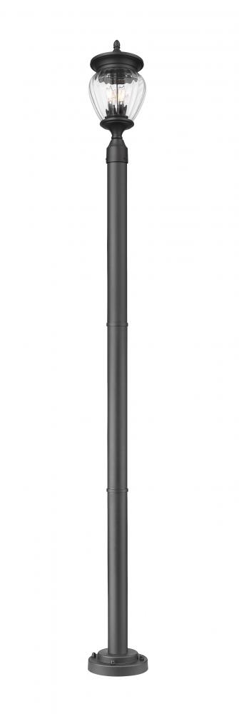 A sophisticated design with vintage impact makes this three-light outdoor post-mounted light the epitome of statement elegance. Perfect for updating a back or front yard with dimmable illumination, this slim, refined fixture pairs an aluminum post and light frame with a Coastal black paint finish and teardrop ribbed glass. A candelabra bulb mount joins intricate silhouetting to offer a touch of romance to your exterior settings.