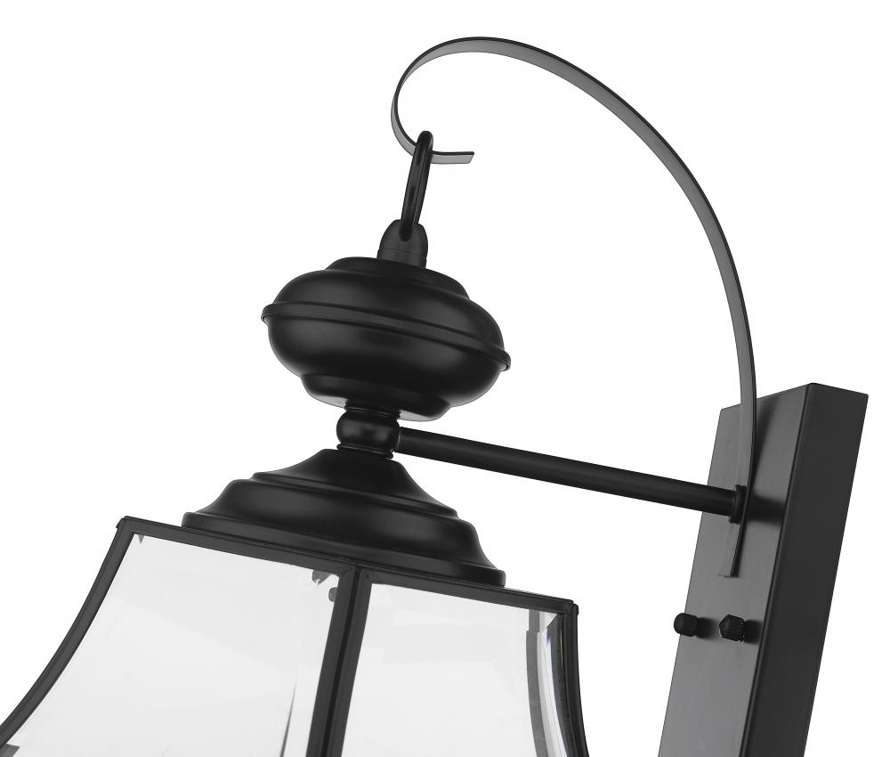 This three-light outdoor wall sconce adds a classic silhouette to the lighting in your patio, deck or porch area. With its candelabra composition, the sconce provides soft, effective illumination. A multi-sided clear beveled glass shade has a black steel frame, creating an elegant impression.