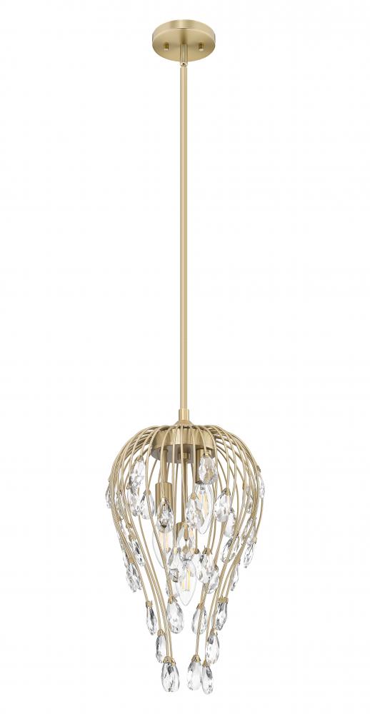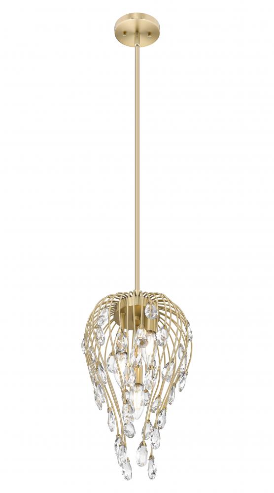 Embrace the botanical motif of this glam three-light pendant, an extraordinary luminaire featuring open metalwork with modern gold metal construction. Exquisite crystal pieces emulate buds capping stems as they radiate soft lighting and exude pure luxury. This dimmable light fixture makes itself at home in bedrooms, dining spaces, hallways, and living rooms.