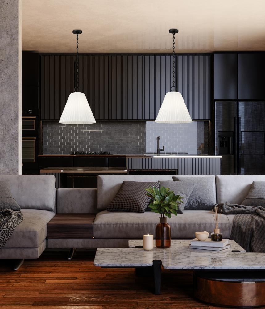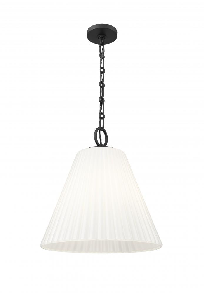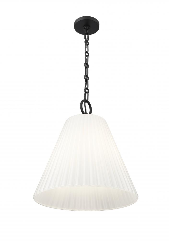 A subtle, sophisticated vibe infuses this modern three-light pendant. Stunning over a living area or breakfast nook, it boasts a delicately fluted, frosted glass shade with a conical silhouette. A matte black finish adds a refined accent and stylish depth to the design.