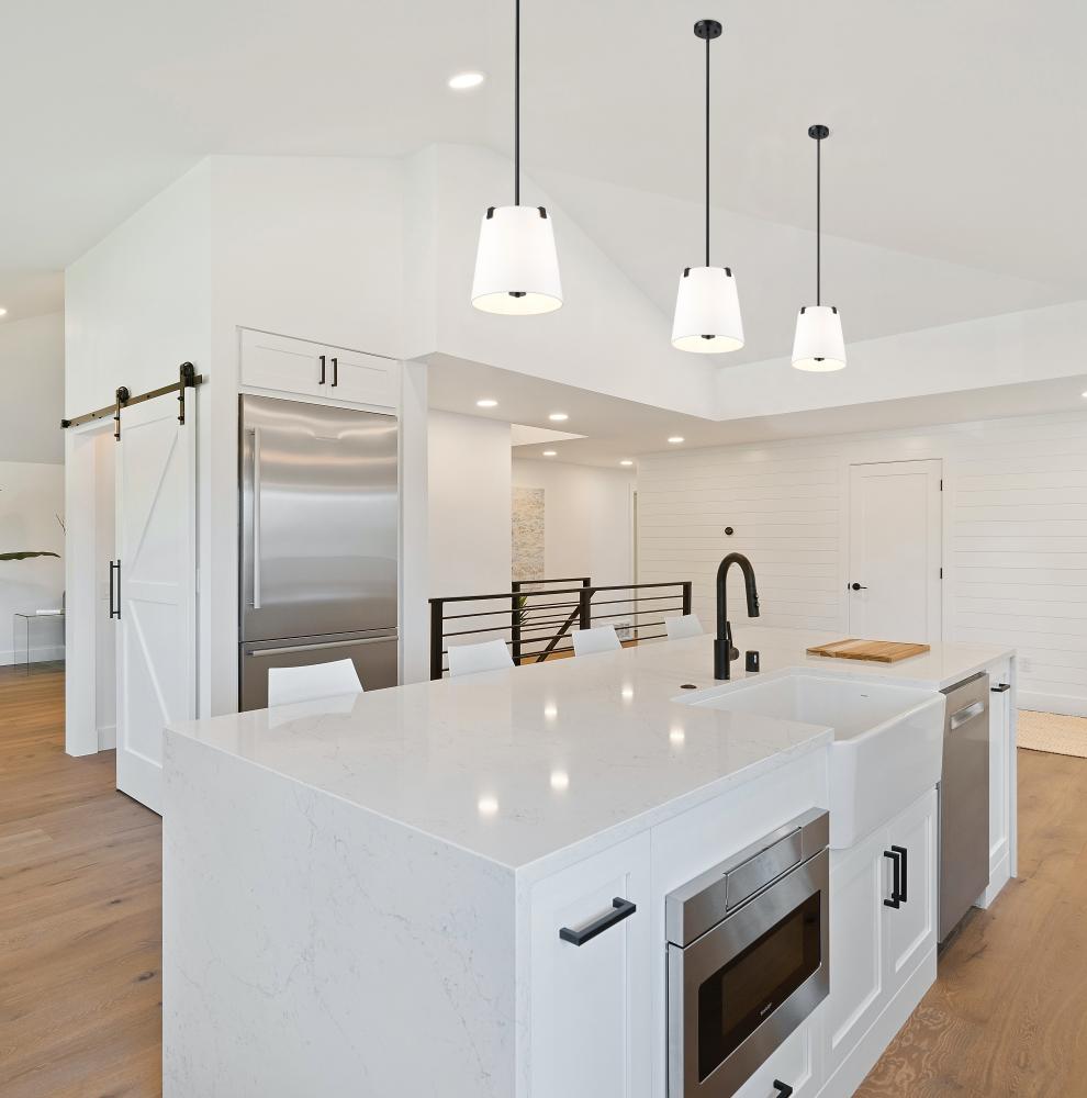 Indulge in a modernized version of traditional lighting with a three-light pendant delivering graceful and fluid design elements. Bold matte black finish steel framing with clips attaches to a bright white linen fabric shade offering low-profile elegance, as candelabra lights diffuse illumination beautifully. This fixture is dimmable, creating mood lighting and efficient functionality.
