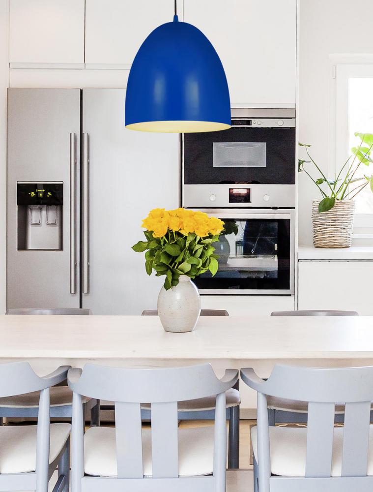 Infuse explosive color to a modern or transitional space as you outfit a kitchen, dining area, or entryway with ambient lighting. The Z Studio Dome three-light pendant wakes up a casual space with its bright blue finish iron dome shade, matching canopy, and charming braided black cord. Mid-Century Modern and farmhouse styles crave the whimsical feel of this pendant.