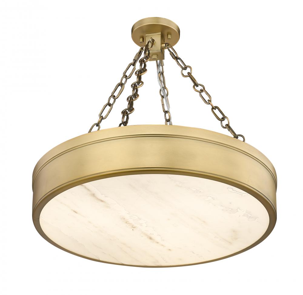 Illuminate a modern or transitional space in style with a light fixture reflecting a host of styles from industrial to architectural to Mid-Century Modern. This three-light LED semi-flush mount ceiling light provides a gleaming quality with a steel frame offering a rubbed brass finish and a decadent alabaster diffuser that infuses ambient lighting. Make a difference in a kitchen, entryway, or main living space with a tasteful and versatile LED light.