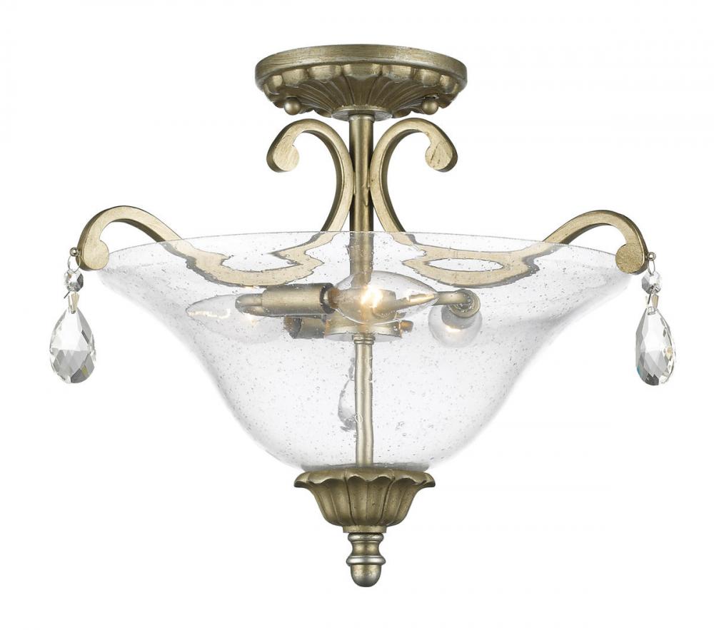 The clear seedy glass shade accents the antique silver fixture giving the Melina family its graceful style. The clear, glimmering crystals enhance the elegance of this fixture.