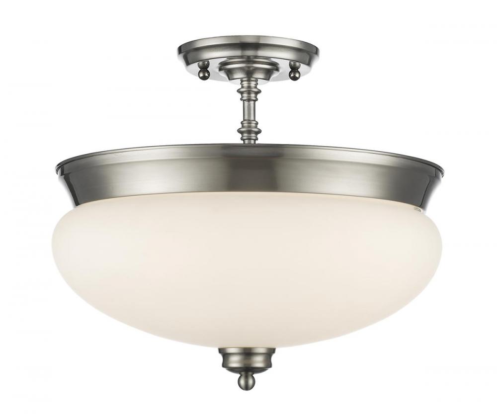 Oblate glass shades influenced by the school house globes of old, the Amon family puts a contemporary spin on a traditional classic. Matte Opal glass paired with sleek modern finishes create a bold yet classic look. Finishes include Satin Gold, Brushed Nickel, Chrome and Olde Bronze.