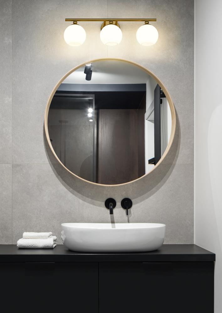 Lift the ambiance of a custom bath space with this contemporary three-light vanity wall light, a classic mix of modern and retro elements that deliver attitude. From the Neoma collection comes a vanity light ideal for an updated ensuite or guest bath with a craving for attention. Opal etched glass globe shades and a minimalist-inspired modern gold finish steel frame join to deliver a stylish look with charming personality.