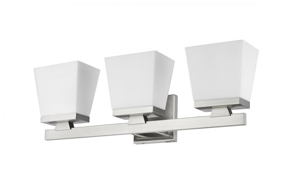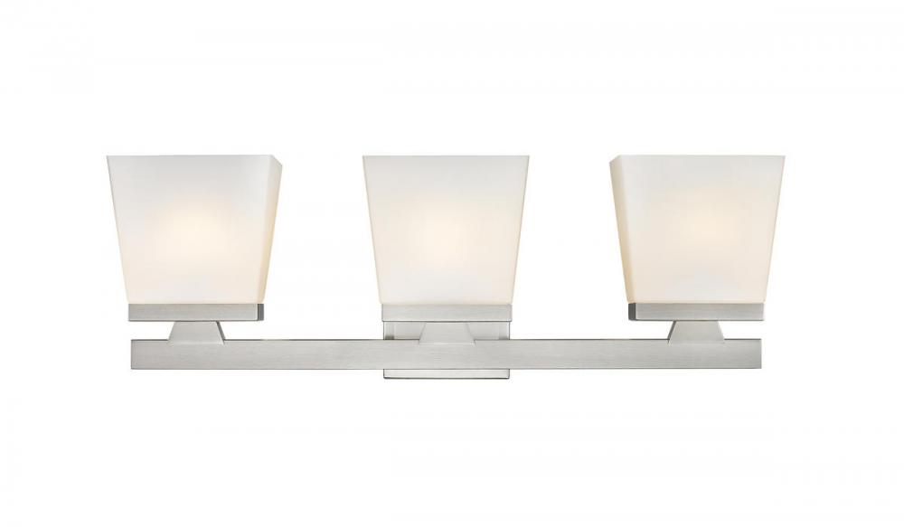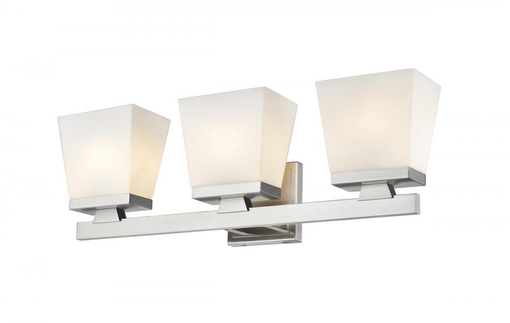 Inspired by the welcoming ambiance of modern farmhouse allure, this three-light vanity light is a chic way to illuminate your bathroom or hallway. The glass shade in an etched opal finish complements the brushed nickel finish for a look that demands attention.