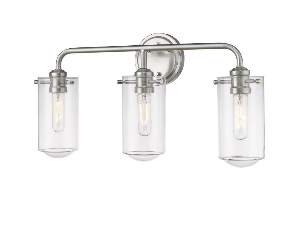 Vintage detailing and modern styling mix to create the Delaney collection. Clear drop glass shades are paired with vintage industrial detailing and finished in your choice of either Matte Black or Brushed Nickel.