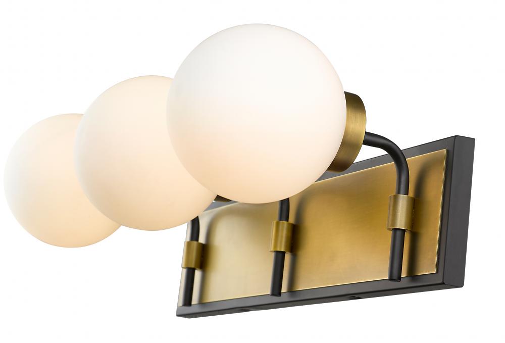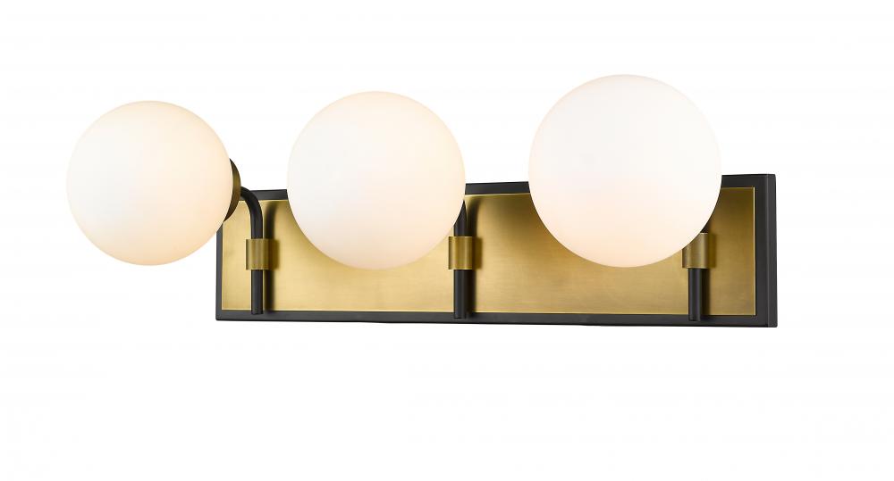 Upgrade the ambiance of your home with this gorgeous three-light vanity. Its crafted with a matte black and olde brass finish and opal shades that deliver a warm radiance. Youll love how its a perfect fit for a bathroom, powder room or bedroom with its mix of modern panache and old school lines.