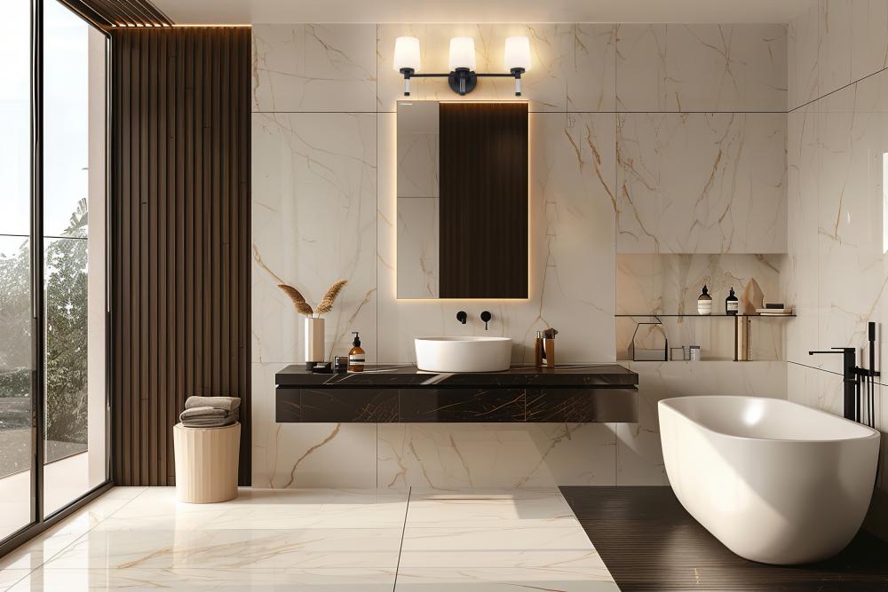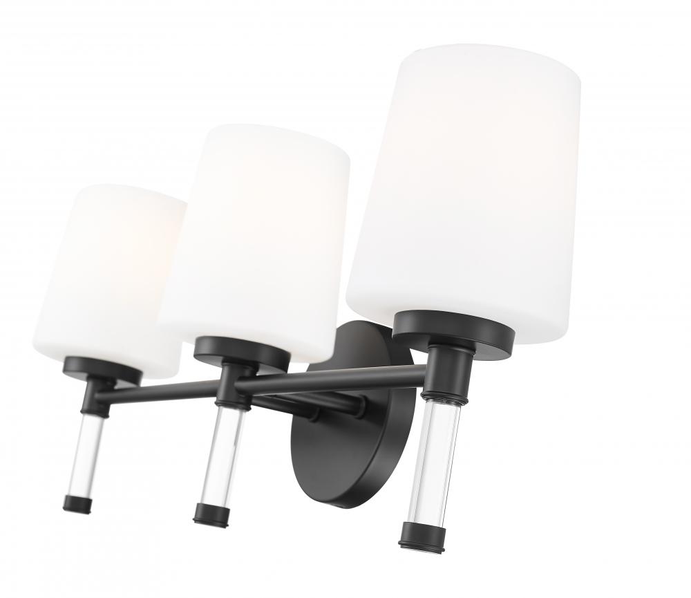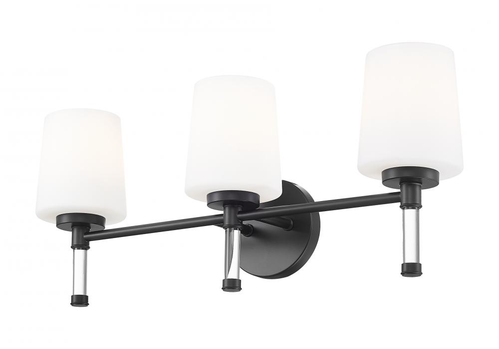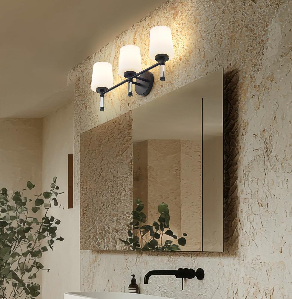 With its deep, inky finish, this matte black three-light vanity light creates a strong outline against pale walls and stone, giving the vanity wall a confident sense of structure. The trio of opal shades appears to hover on clear stems, so the overall look stays light and airy even as the fixture delivers plenty of brightness for detailed grooming. Perfect for a modern farmhouse bath or a city loft, this design introduces just enough drama to make everyday routines feel a bit more elegant.