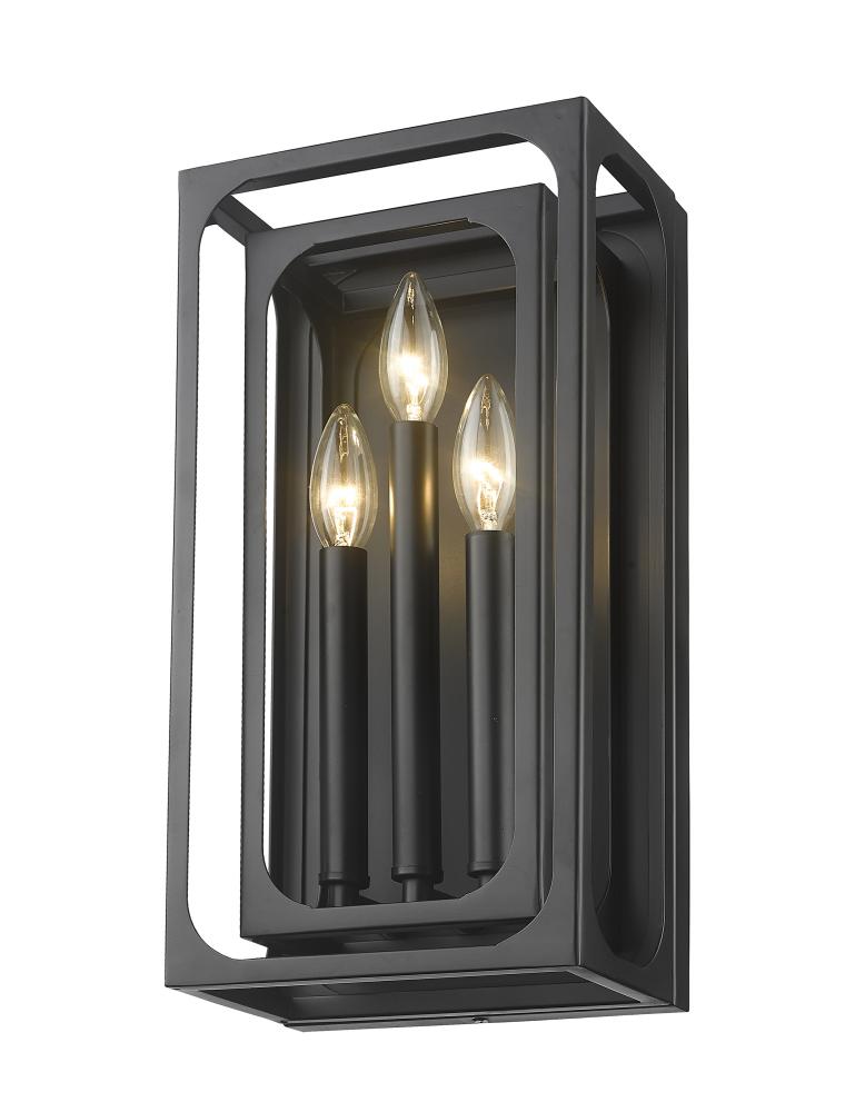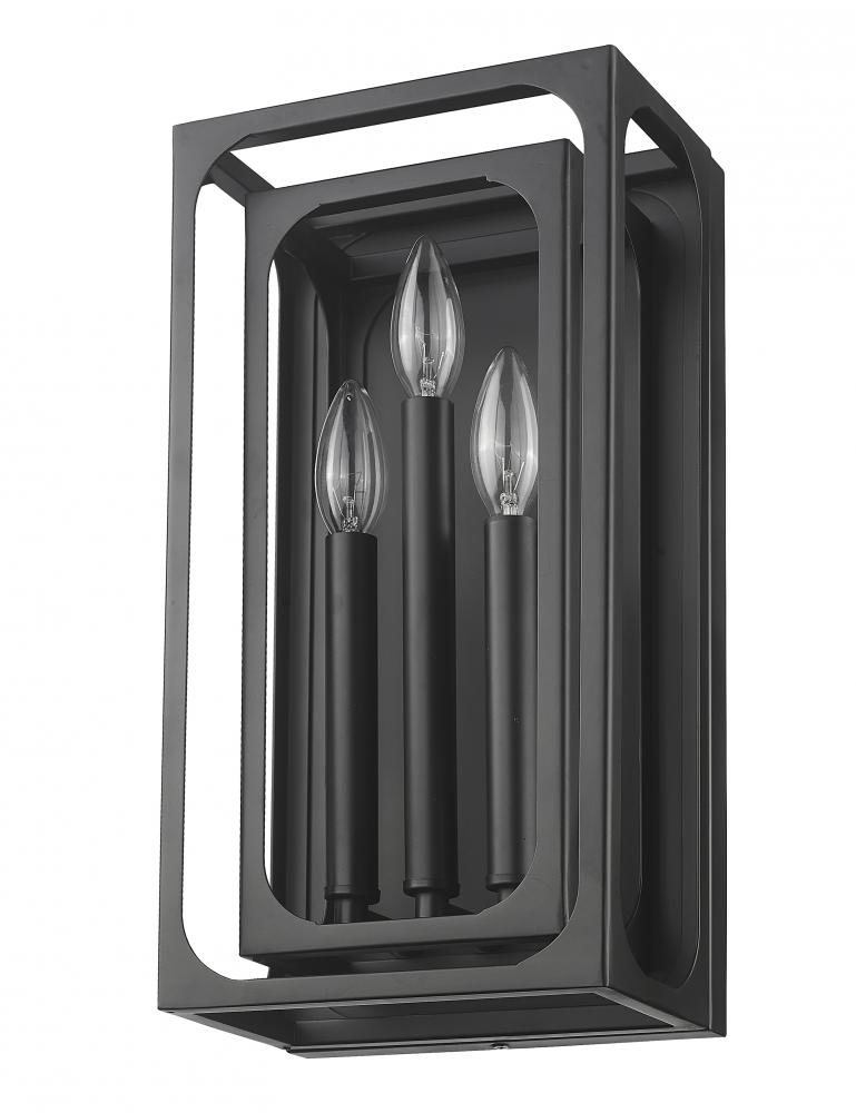 A compelling aesthetic blends old and new with a light fixture that changes up the attitude in a modern or transitional space. The Easton metal three-light wall sconce creates a mixed motif with candelabra bulb mounts set in a graduated arrangement, centered in full view thanks to a dual-layered openwork matte black finish metal frame. A bold version of minimalism reflects with a sought-after effect, accomplishing its objective with an extraordinary blend of finish and minimalist construction.