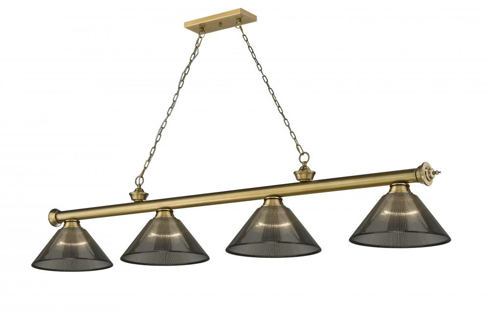 Brighten up a kitchen, dining room, or game room with the sophisticated design of this traditional metal billiard light. Blending a rich, rubbed brass finish with four smoke acrylic shades, this fixture adds a modern update to classic interior d?cor.