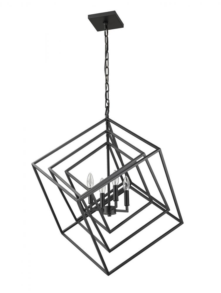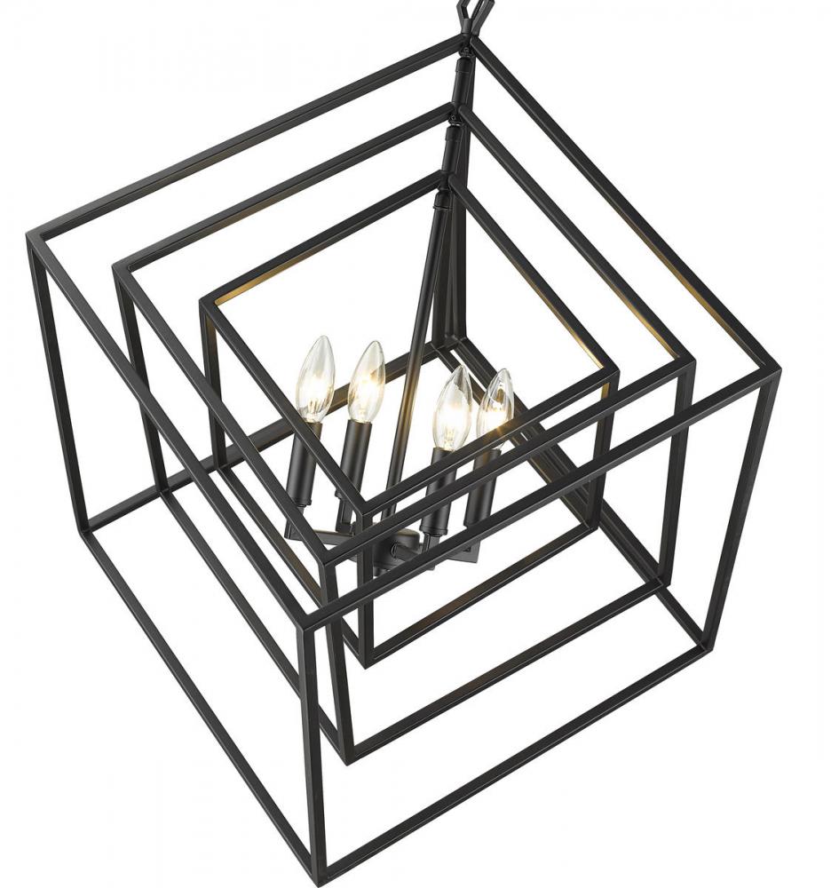 Bold geometric shapes nested within themselves inspire the modern design of the Euclid collection. Uniquely layered parallelograms and cubes, encapsulate the inner candelabra. This popular Collection is now available in all Matte Black Finish.