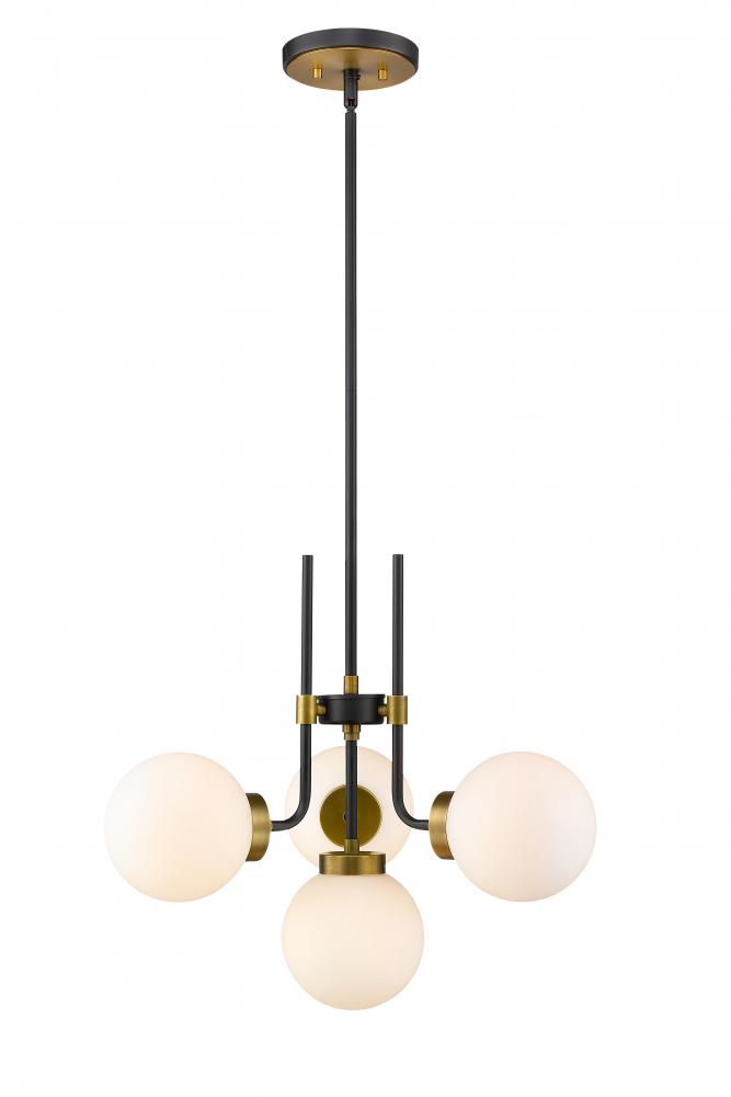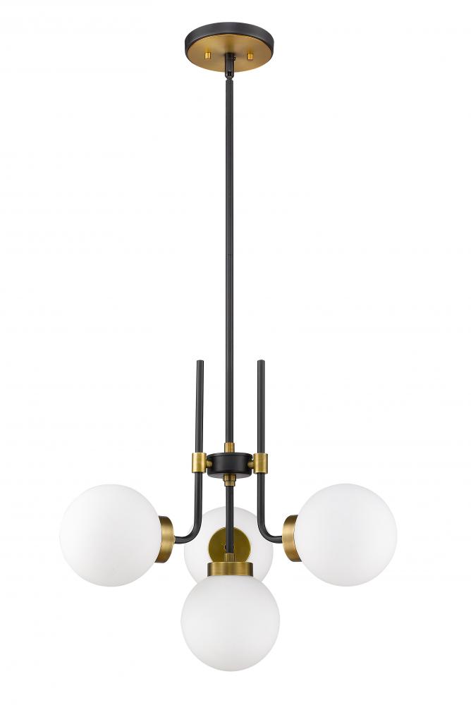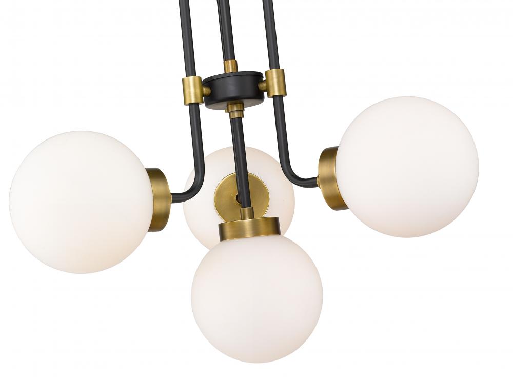 Enhance your favorite room with the rich tones of this four-light chandelier. Its fashioned with a matte black and olde brass finish and opal shades that deliver all the warm glow you want. It will add a touch of ambient brilliance to any space in the home, whether its the dining room, foyer, or kitchen.