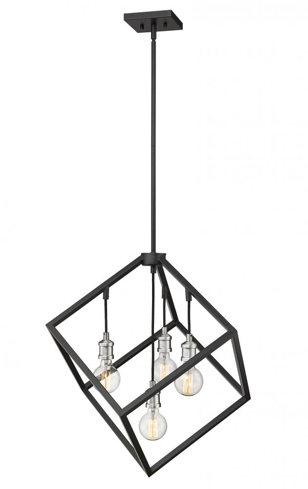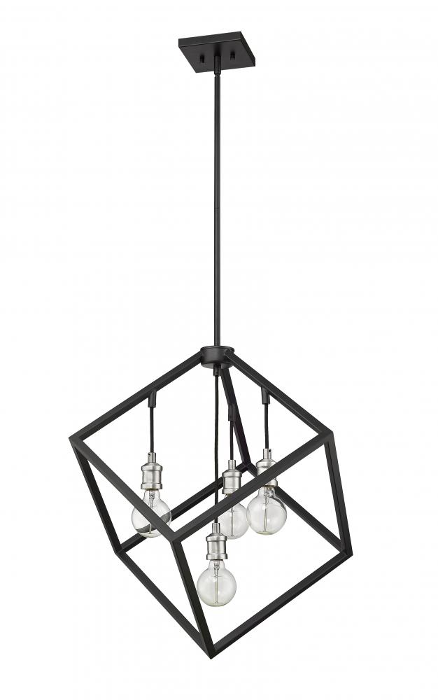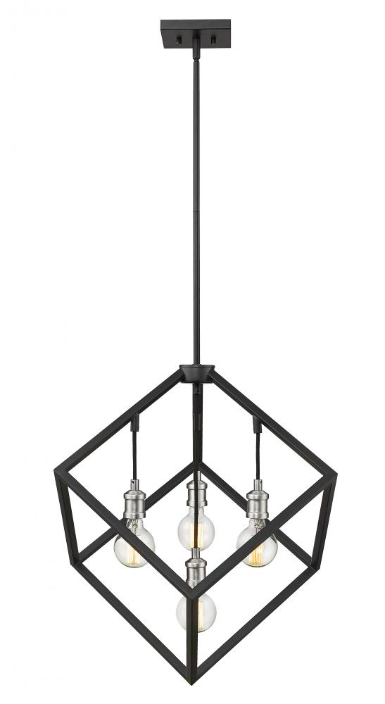 Youll love the clean modern edge that this two-tone four-light pendant adds to your home. It features a matte black and brushed nickel finish with the lights inside a single cube-shaped shade for a dynamic look and feel. Its a vibrant light designed to transform any dining room, hallway, bedroom, or kitchen.