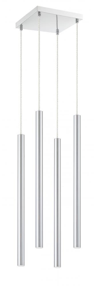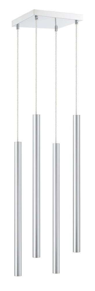 The windchime-inspired frame on this four-light pendant light is elevated with sleek lines and metallic radiance. Create a stylish focal point with a sleek chrome finish.