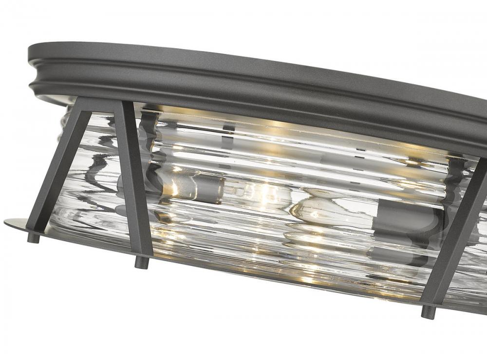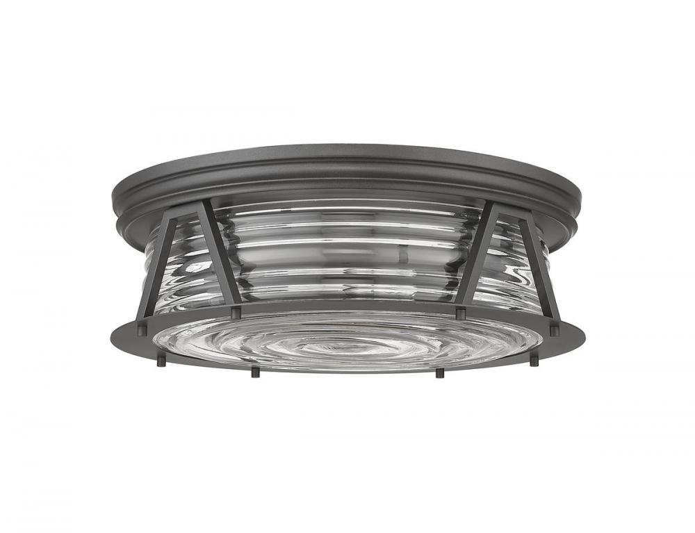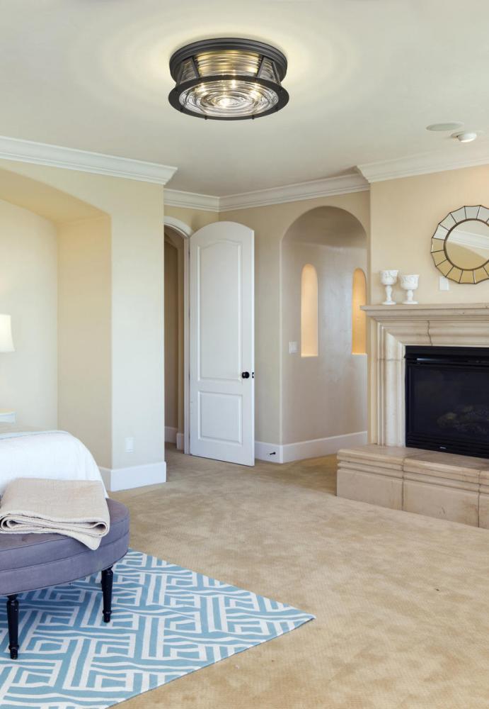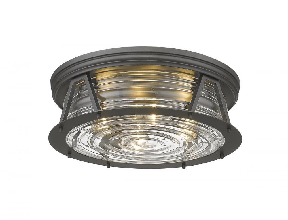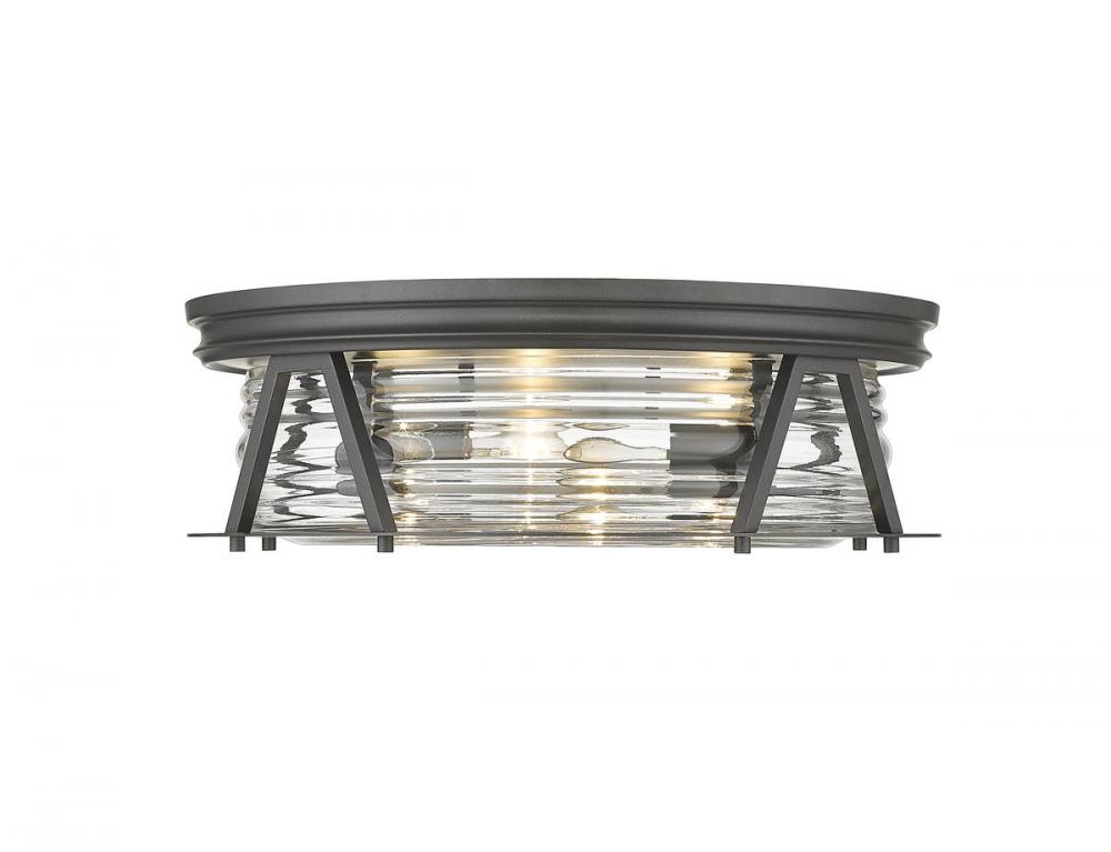Delivering bright lighting for a modern space, this bronze and glass four-light flushmount ceiling light covers all design bases with a nautical-inspired motif serving industrial, modern, and Art Deco aesthetics. Emulating a Fresnel lens found in historic lighthouses on coastal North American shores, this light from the Cape Harbor collection blends chic ribbed glass with bronze finish steel to create versatility and an expressive look in any contemporary or transitional space.