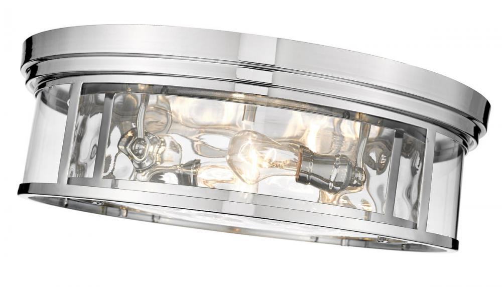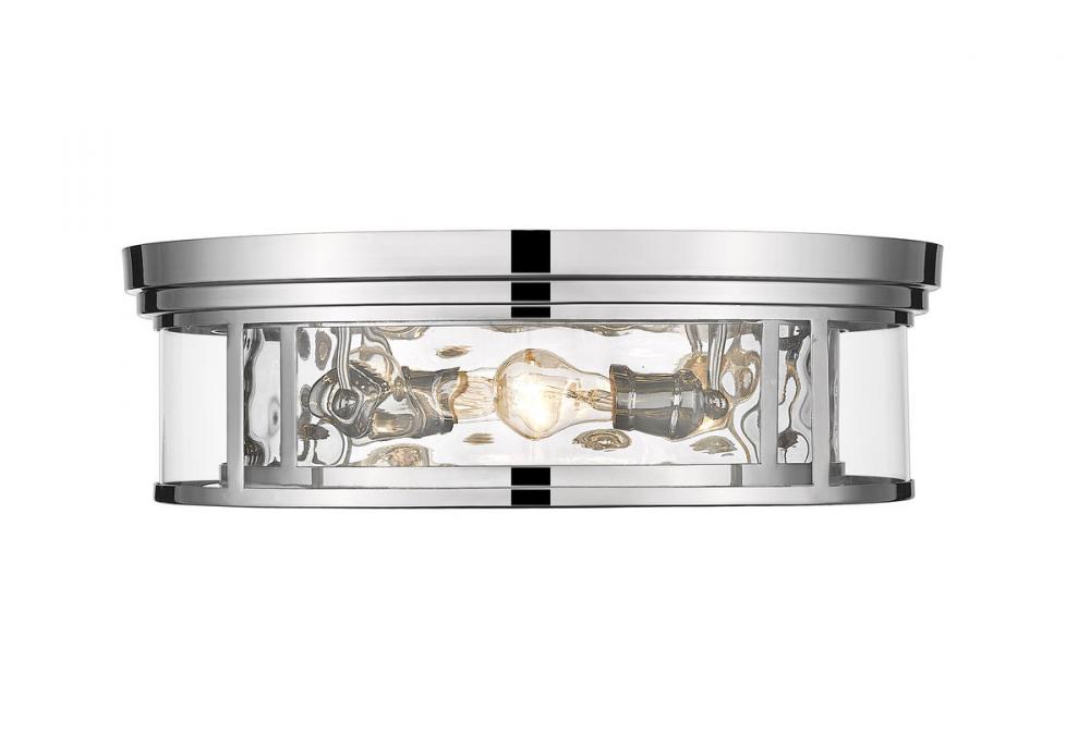 This four-light flush mount light brings a modern feel to any room in your home with its sleek, steel construction and clear water glass shade. Ideal for hallways, entryways, and bedrooms, this fixture comes in a olde brass finish for a versatile style.