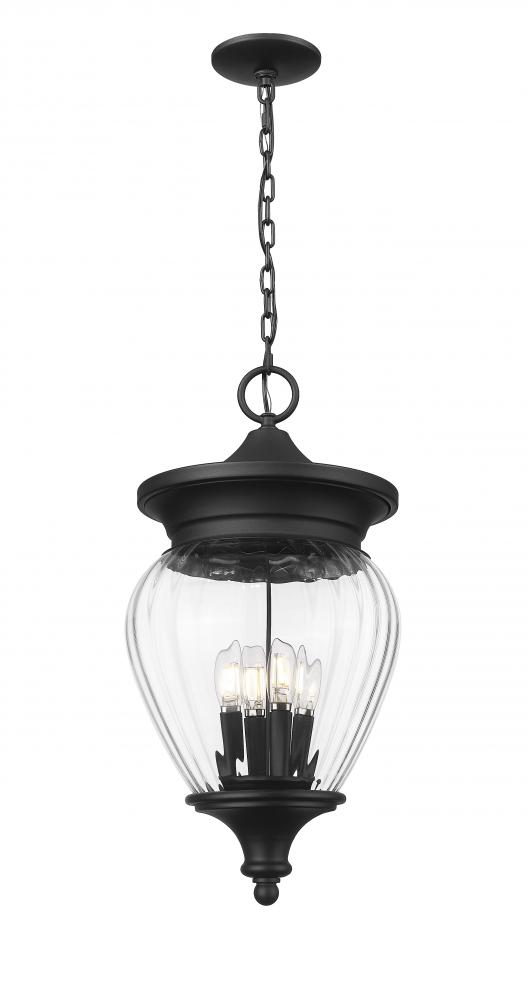 Beautiful artisan style is shapely and sensual in an exterior light fixture that raises the elegance level in any setting. Asian influence drives a tapered silhouette when a clear ribbed glass shade joins ornate detailing, with a Coastal black paint finish over aluminum.