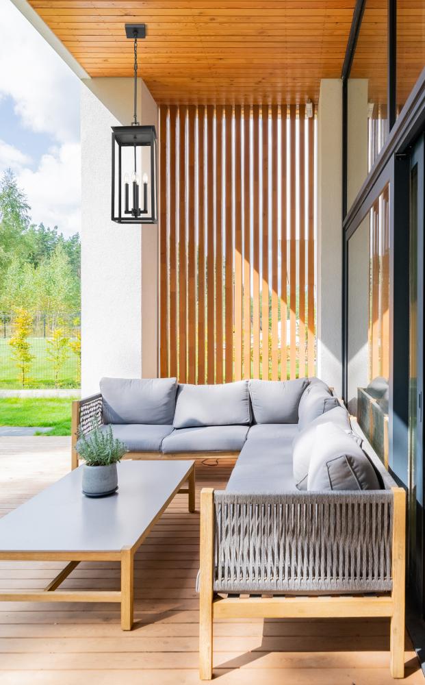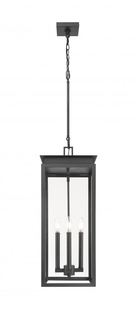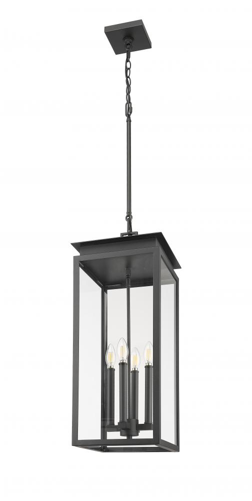 Upgraded details bring transitional style to the traditional lantern silhouette of this four-light outdoor hanging pendant. Beautiful over a front entry or patio living space, it features a squared silhouette with glass panels and a layered cap design that brings a hint of luxury. Its coastal black finish is designed to stand up to the elements, even in coastal environments.
