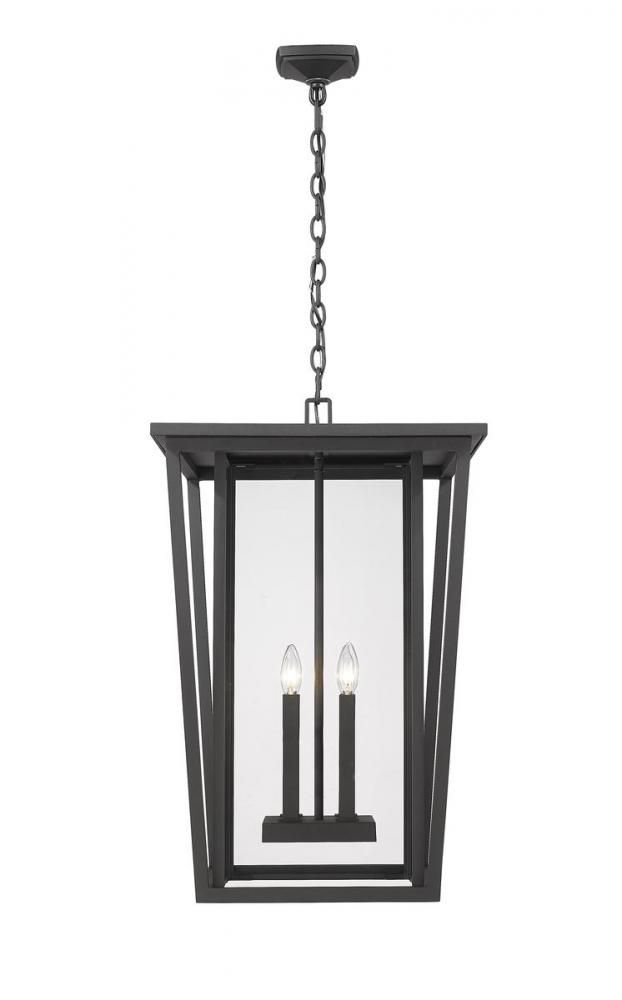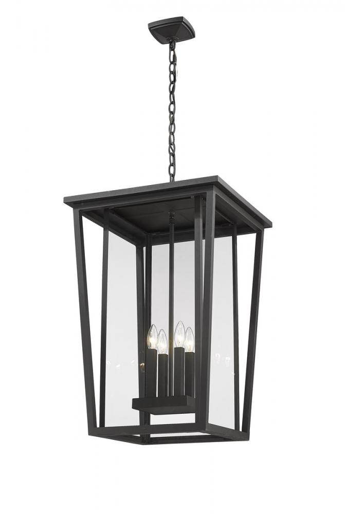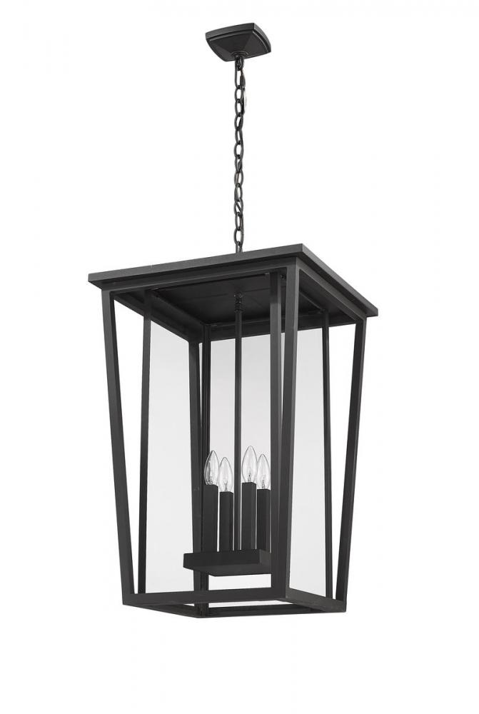 Embrace a minimalist linear design offering sophistication and style for an exterior space. This four-light outdoor chain light fixture features a black finish aluminum housing with geometric precision and subtle angles and specially cut clear glass panels. From the Seoul collection, this contemporary light presents an orderly design with upscale contemporary ambiance.