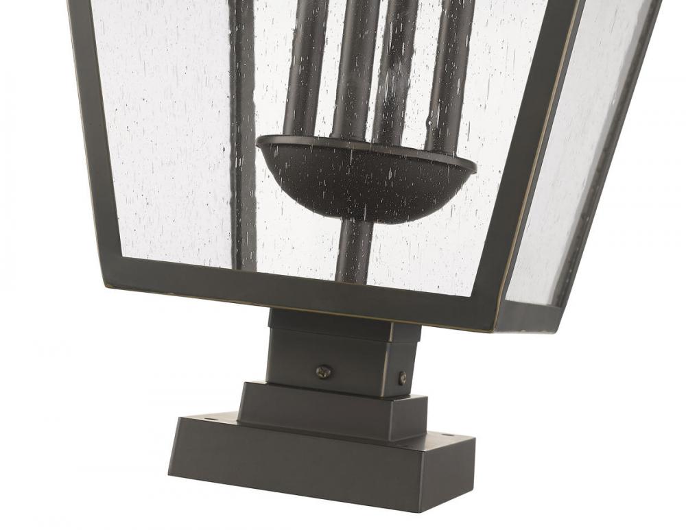 Careful landscape design efforts deserve embellishment, and the Talbot four-light pier mounted fixture delivers in a big way. A charming village motif infuses industrial-transitional style, blending a lantern silhouette frame and pier crafted of oil rubbed bronze stainless steel with a matching interior bulb cluster mount. Seedy glass panels offer a tasteful modern transparency.