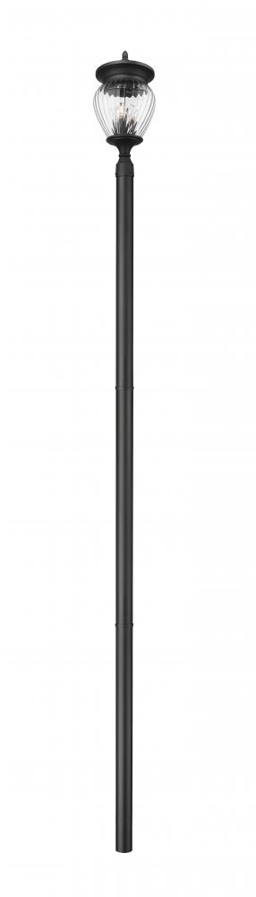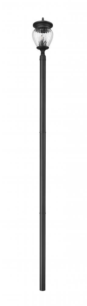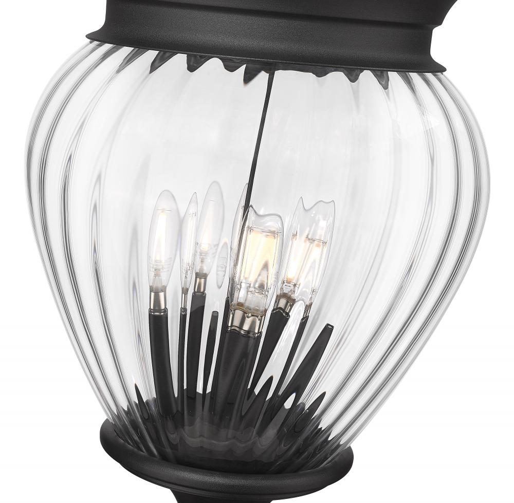 Exceptional artisan flavor turns an exterior fixture into a primary d?cor piece suited for a sophisticated yard setting. This four-light outdoor post-mounted fixture is a complete unit features a clear ribbed glass shade that filters light and creates rich dimensionality. With a smooth Coastal black paint finish, its dramatic impact is softened with a romantic gallery style.
