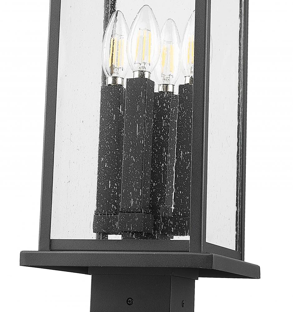 Create an inviting ambiance along an outdoor pathway or garden walk with this transitional post mount lantern. It features aluminum construction with a durable coastal black finish that stands the test of time. The lantern is a clean-lined design complete with clear seedy panels that cast glowing illumination.