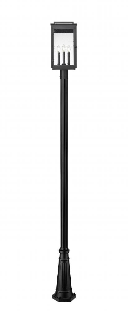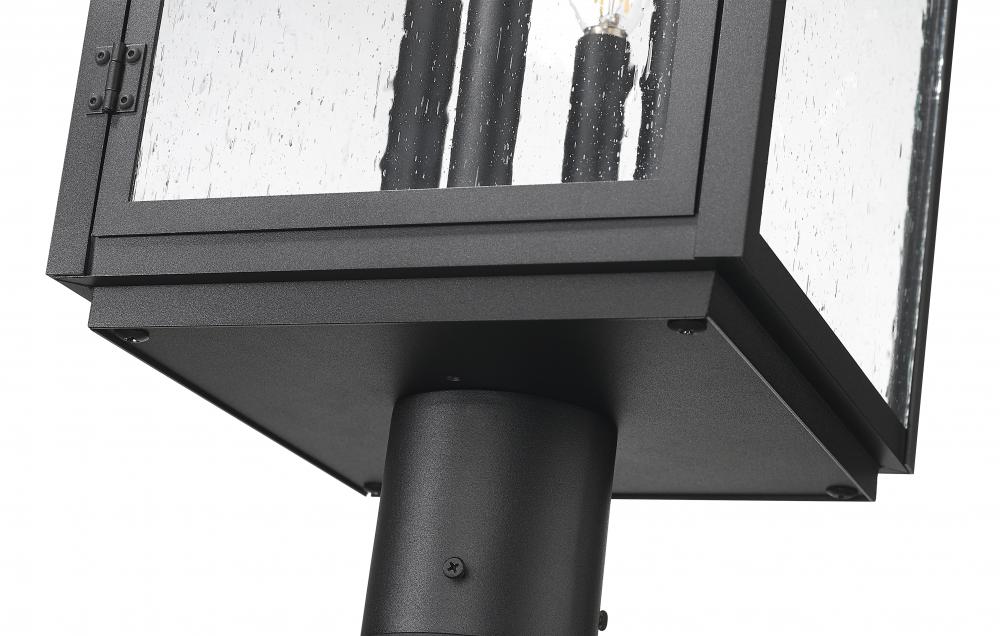 Put finishing touches on a farmhouse or industrial exterior with this Mission four-light outdoor post mount fixture. Delivering impeccable curb appeal, its bright illumination shines through panes of clear seedy glass, creating a touch of texture and depth along a walkway or in the garden. A sand black finish adds texture and depth while standing up to the elements.