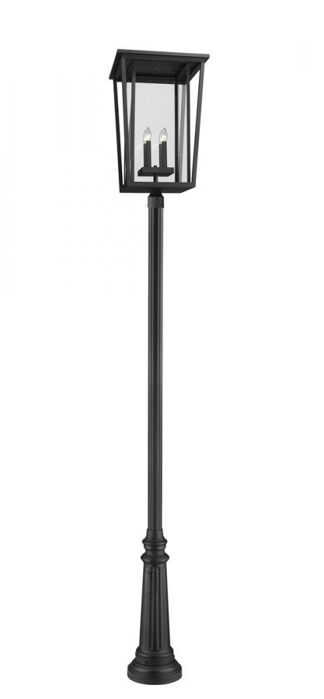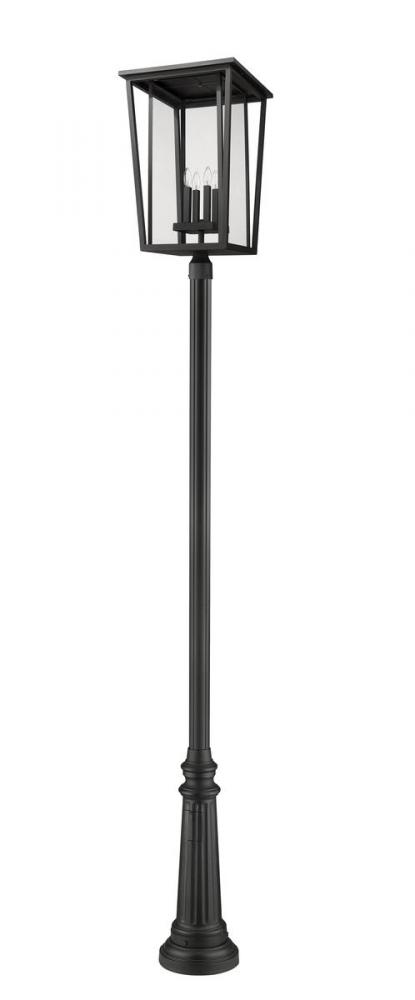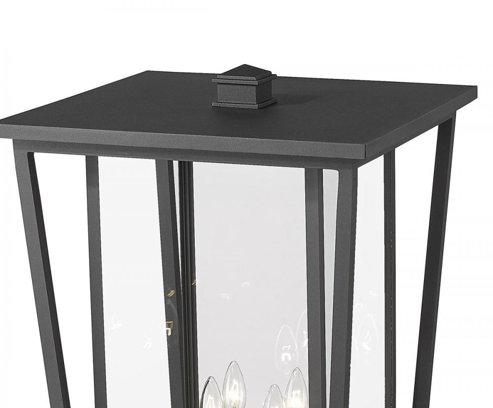 Bring an enticing mixed motif design to an exterior space with this classic four-light outdoor post-mounted light from the Seoul collection. Topped with a geometric-inspired design featuring black finish aluminum and specially cut clear glass, its chic post offers charming texture and a minimalist look.