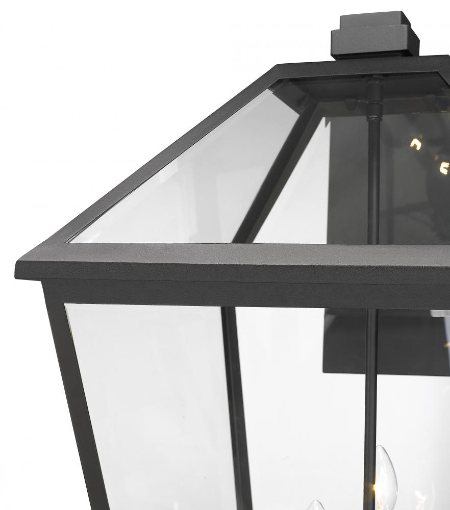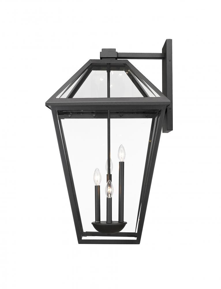 Bring a transitional and industrial inspiration to exterior spaces with the dynamic design of the Talbot four-light outdoor wall sconce. Illuminating a porch or deck with this tasteful fixture, it offers a lantern-like silhouette with a hint of village charm. A black finish stainless steel nestles panels of clear glass, offering a full view of clustered slender bulb mounts, creating a symmetrical look that adds class.