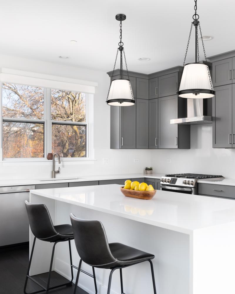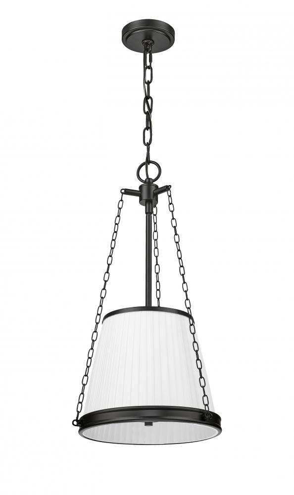 Charming chains add ornamental delicacy to this modern four-light pendant. A matte black finish creates contrast, especially against its pleated linen shade, which diffuses light for an inviting look and feel. Add this pendant to a powder room or in multiples over a kitchen island.