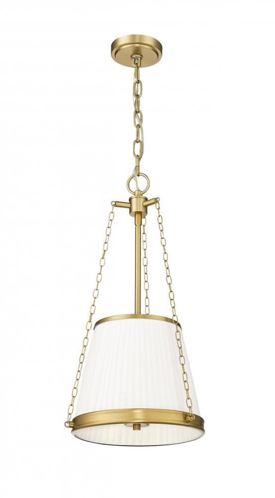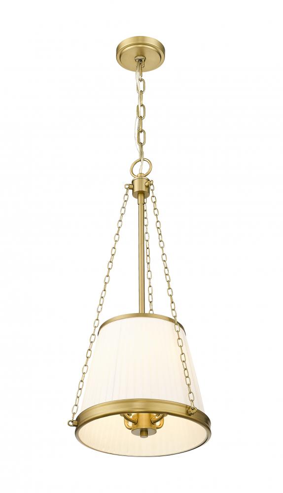 Warm modern gold finishing imparts approachable sophistication into this charming four-light pendant. A pleated linen shade creates stylish texture and dimensionality, while delicate chains add detail and height adjustability, perfect over a kitchen island, powder room, or other living space.
