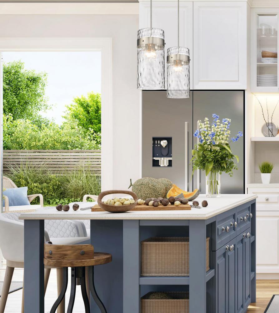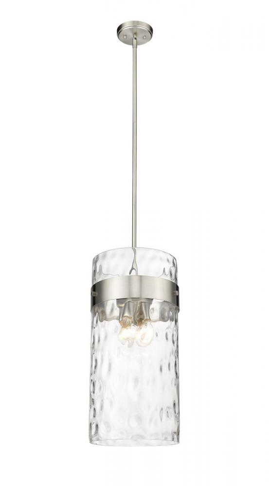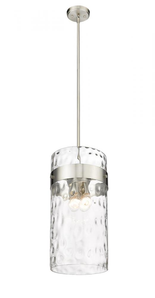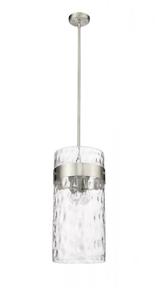 Suspend an alluring four-light pendant fixture from your kitchen ceiling for an aesthetic display. Featuring a cylinder glass shade with a lovely ripple texture, this piece is crafted from steel with a brushed nickel finish.